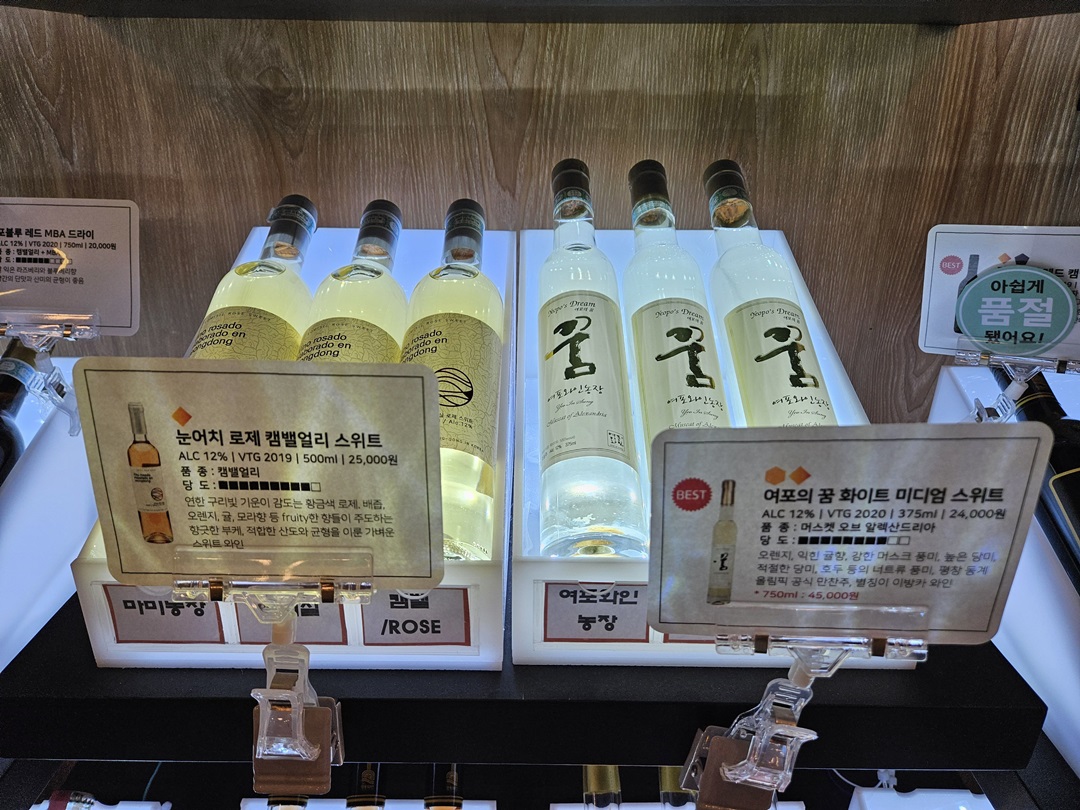 다양한 와인들이 전시되어 있었는데 보통 가격은 2만 원에서 4만 원대 정도였습니다.