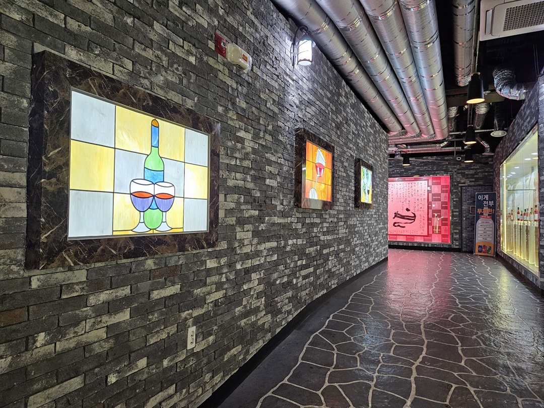 이곳은 세계와인관입니다. 나라별로 모아놓은 와인과 천장에 있는 와인잔이 아주 멋스러웠구요.