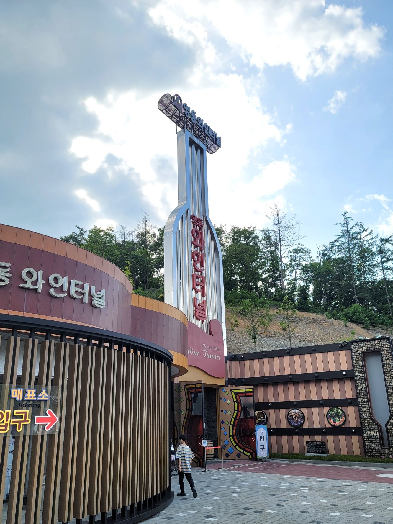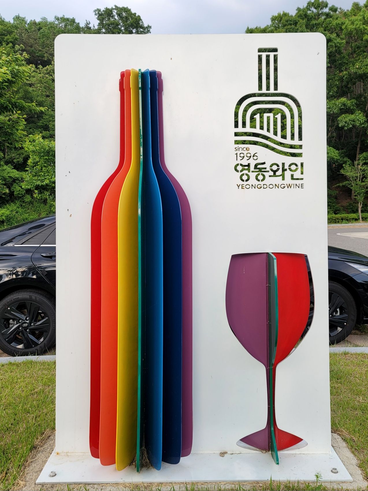 영동 와인터널 입구인데요. 커다란 와인병과 잔 등으로 멋지게 만들어 놓았더라구요.