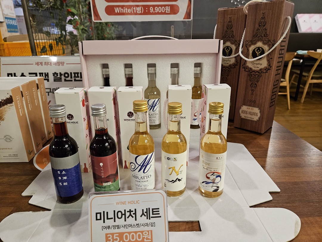 다른 영동의 제품과 와인공병까지 다양한 판매 상품이 있었답니다.