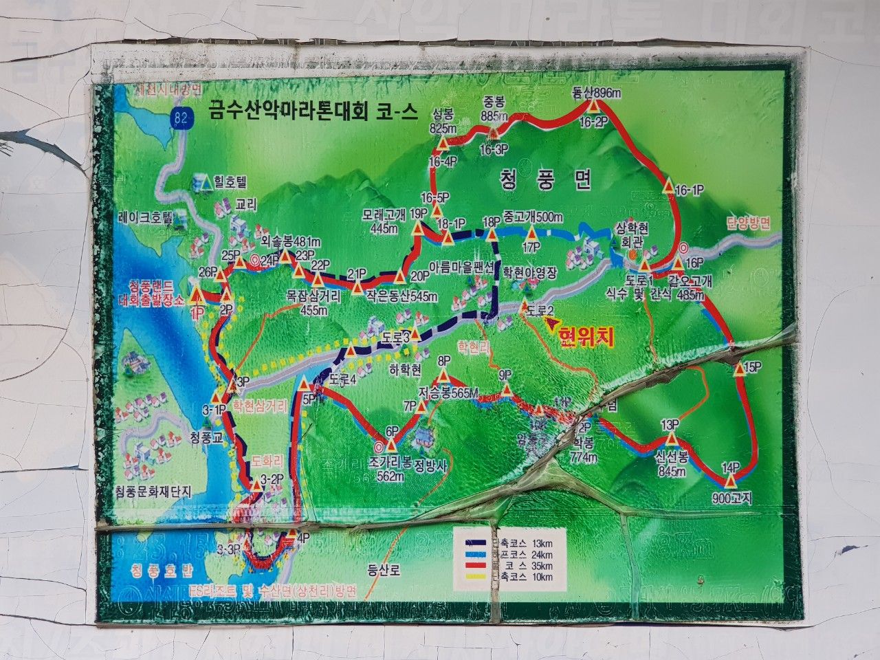 제천 청풍면 일대 산행로 살펴보니 금수산 산악마라톤대회 코스도 있네요.