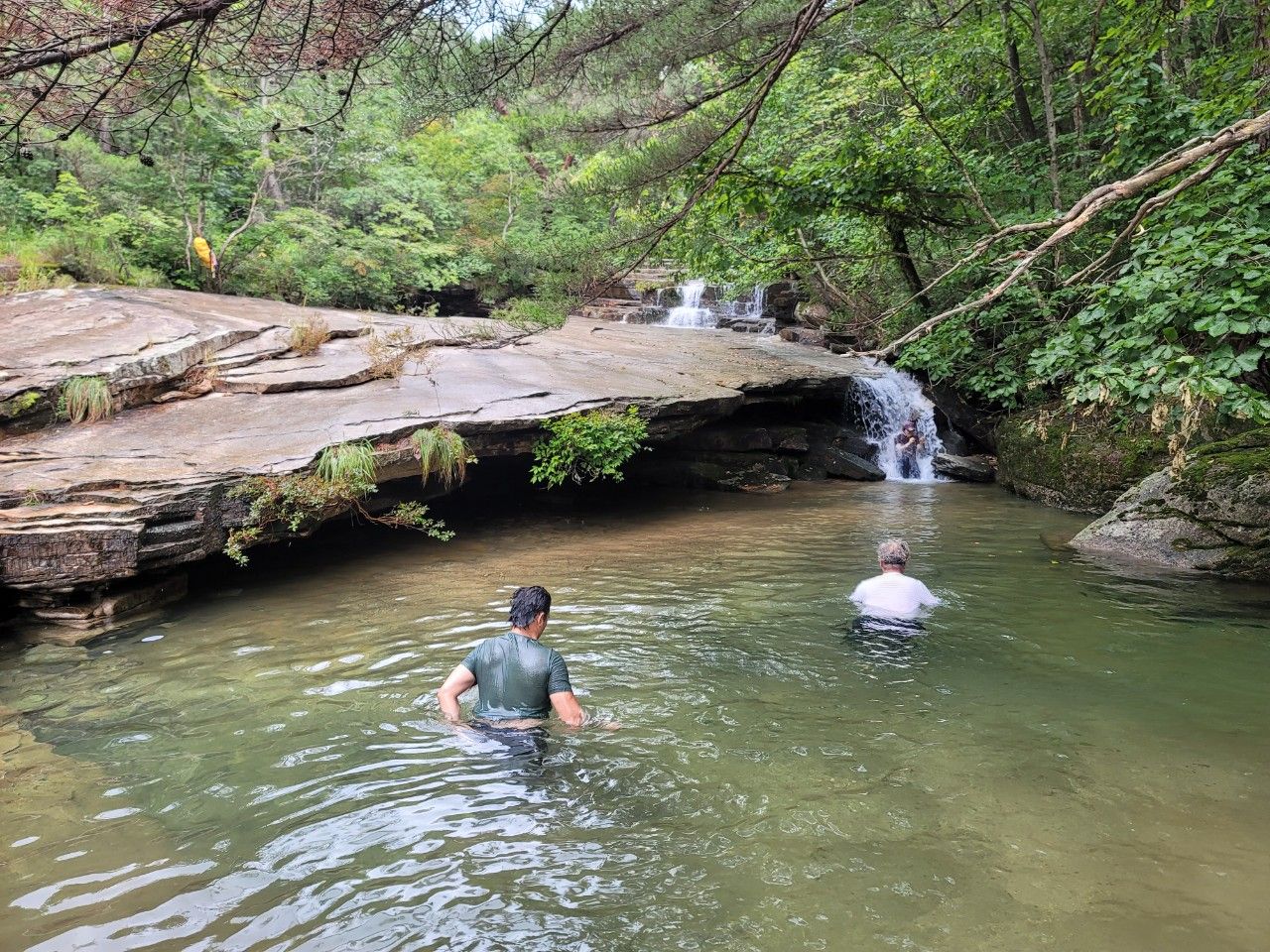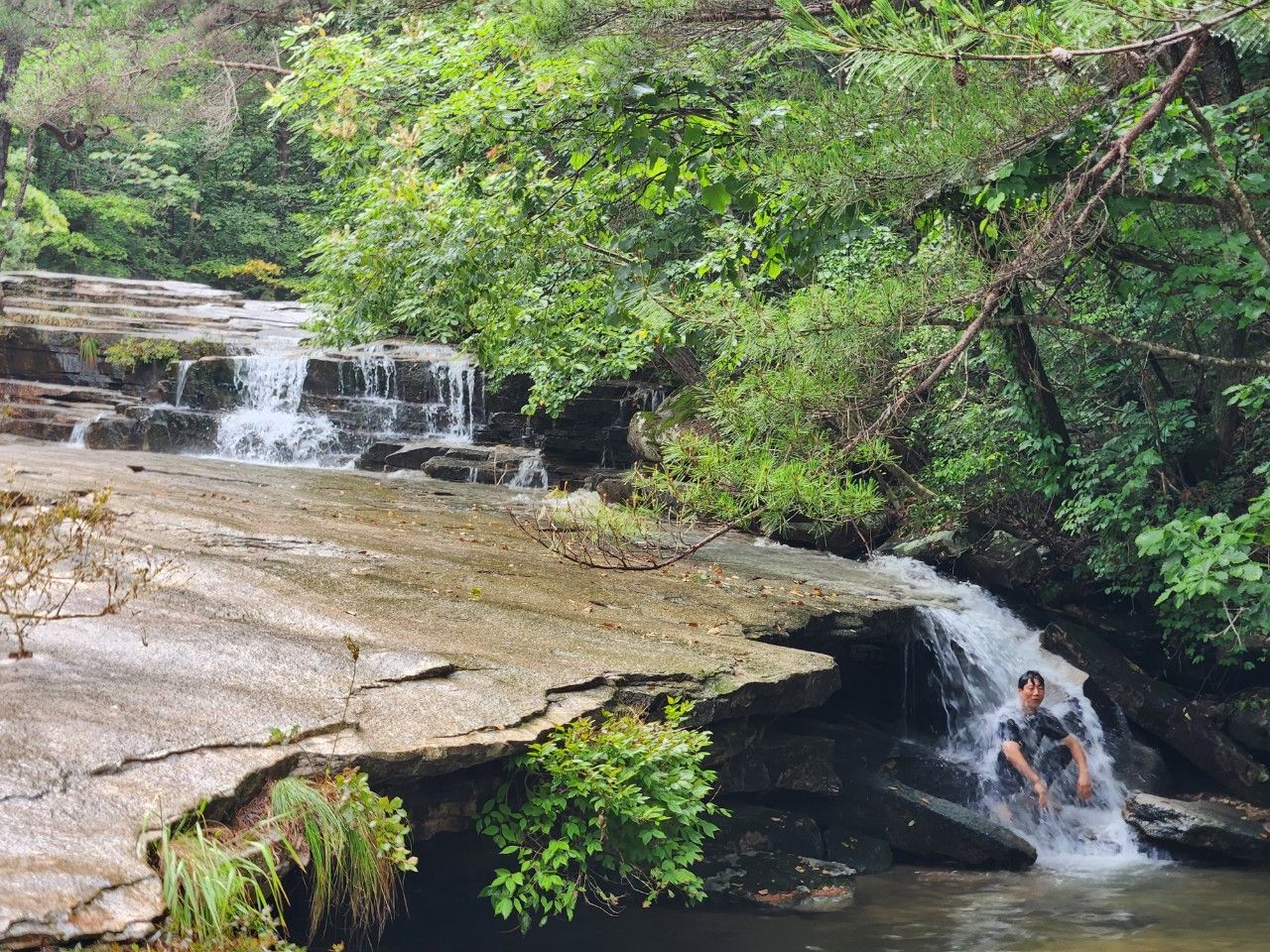 생각보다 수심이 깊지 않아 엉덩방아를 찧었다고 하네요~^^ 유쾌한 입수를 끝으로 산행을 마무리하였습니다.