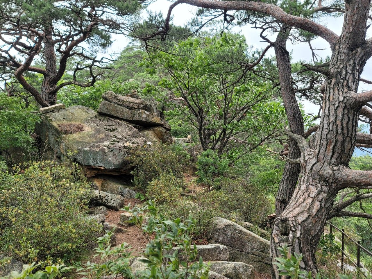 멋지고 특이한 소나무들이 아주 많은 산이었습니다.