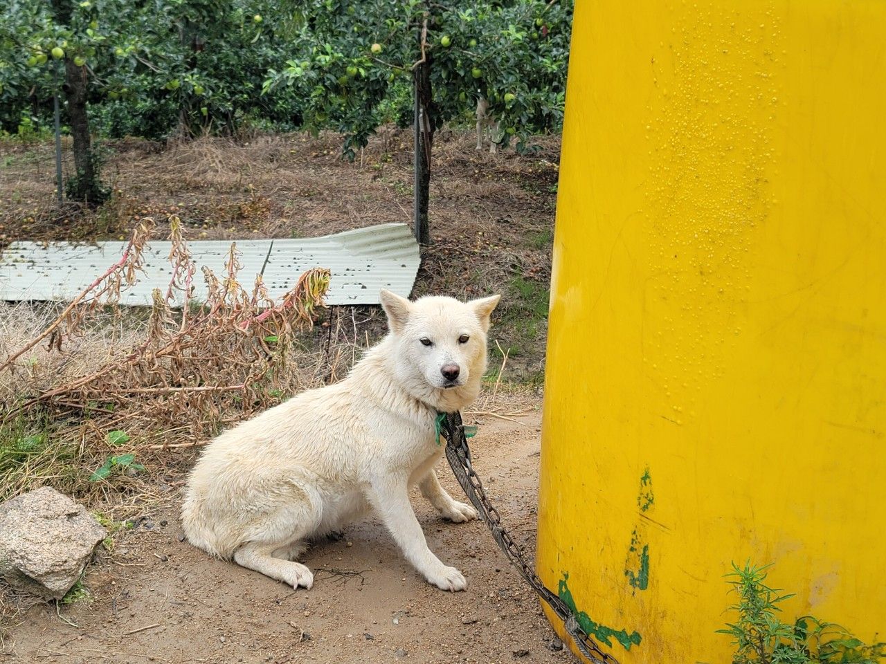 맹견? 가까이 가니 뒷걸음질~~ㅎㅎ 귀도 내리고 순한 강아지였다는 반전이 있었습니다.