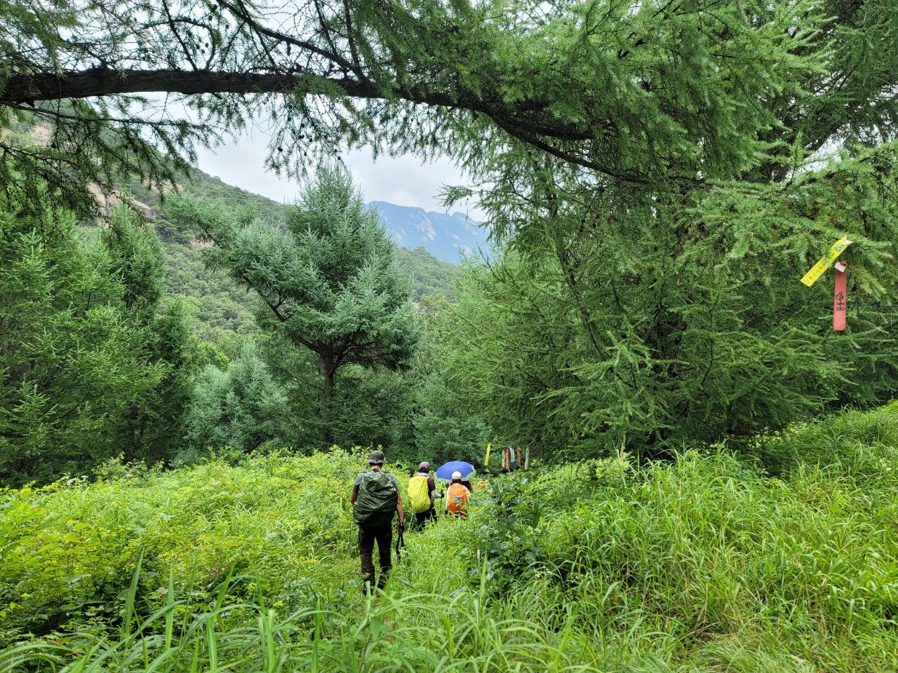 계곡 횡단 구간이 두세 군데 있어 폭우 시엔 능선길 따라 하산해야 할 것 같습니다.