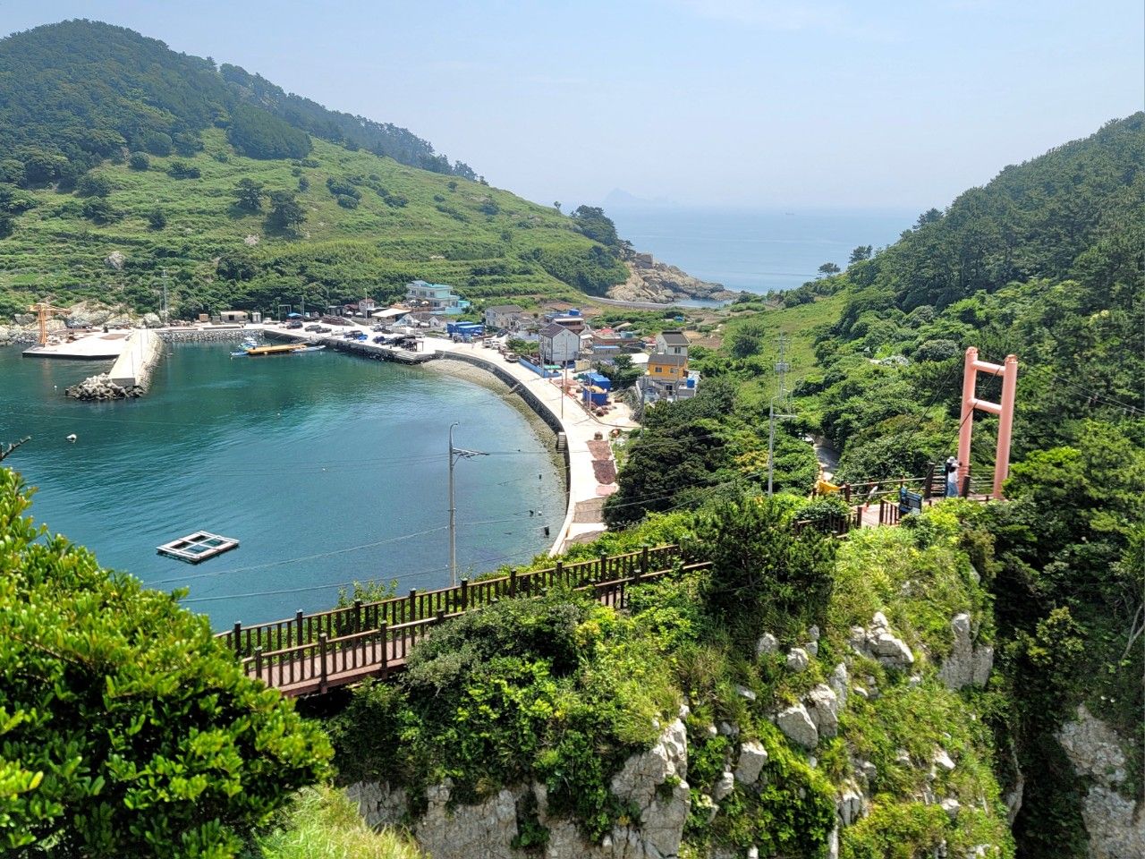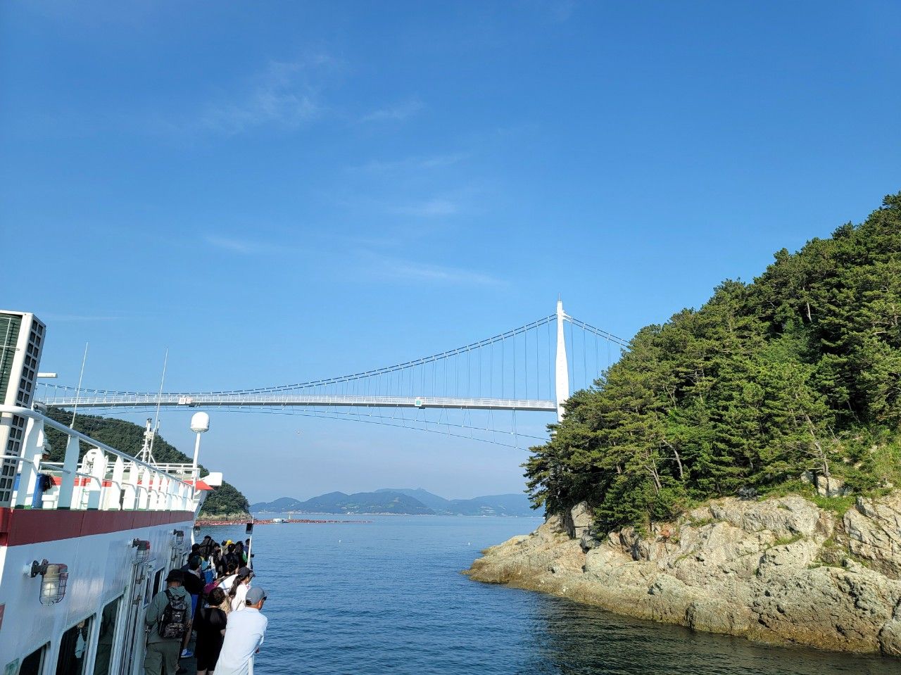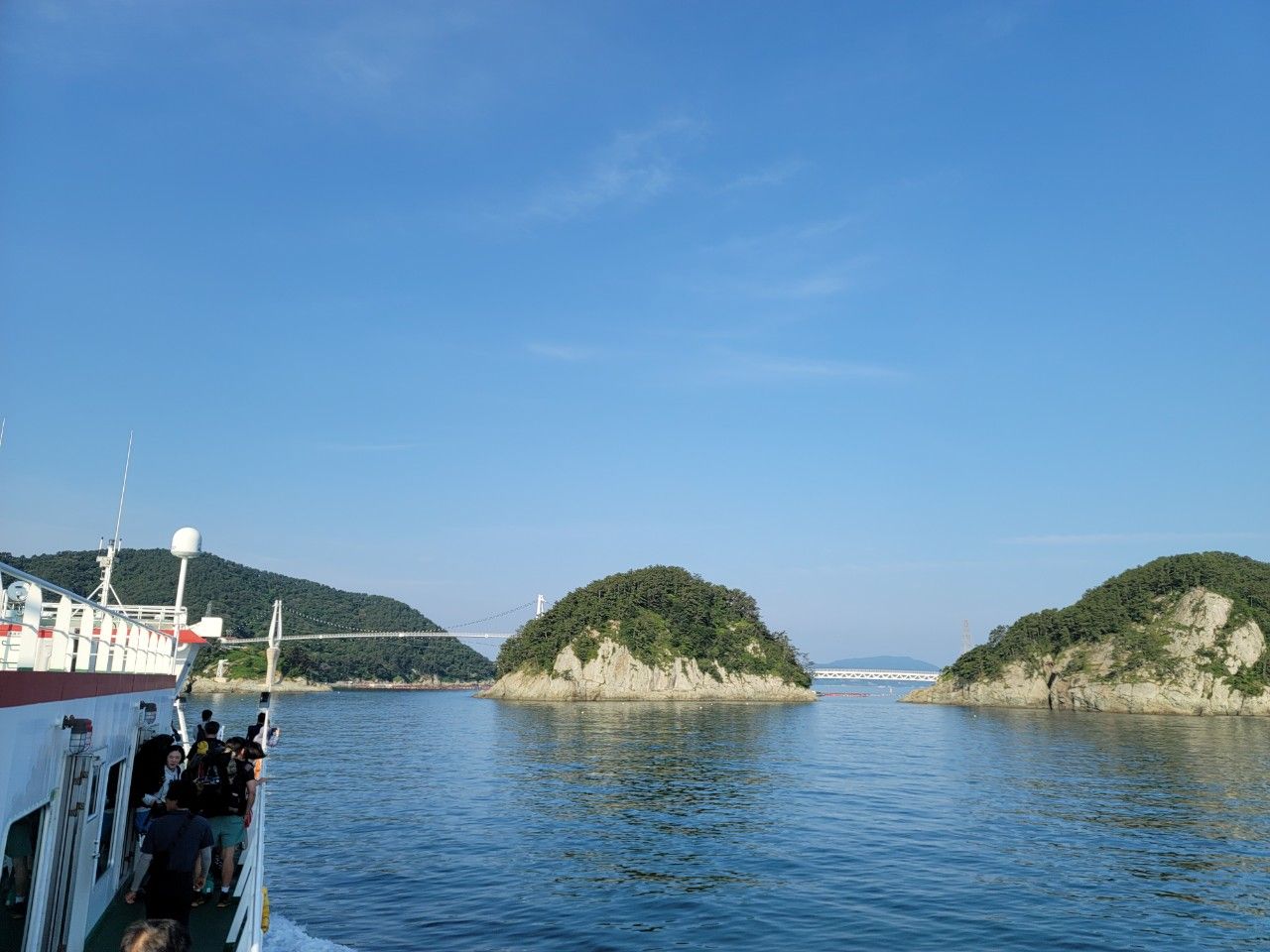 연화도와 연결된 오른쪽에 보이는 우도도 지나는데요. 섬 사이에 연결된 다리 밑으로 지나는 것도 재밌는 것 같습니다.