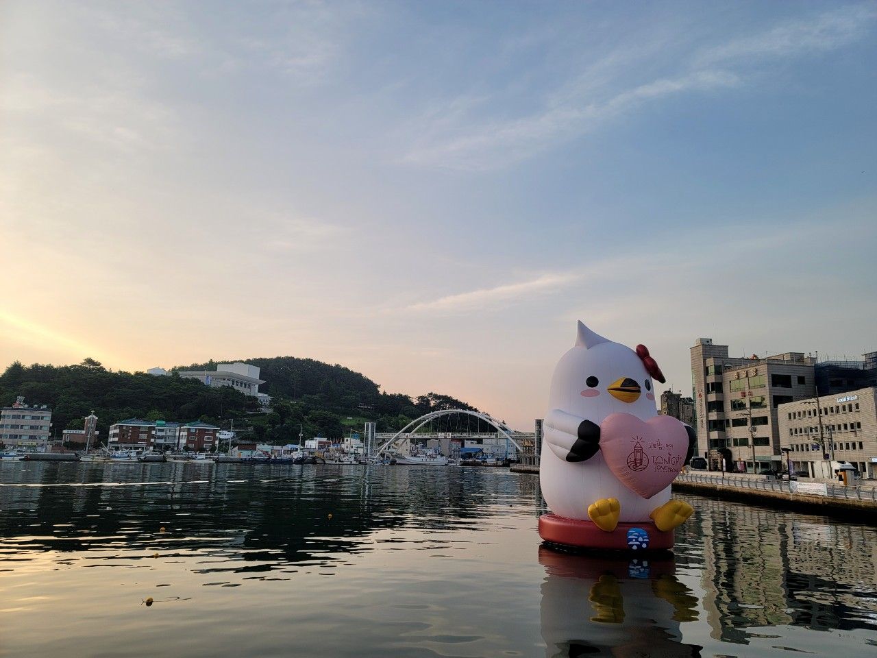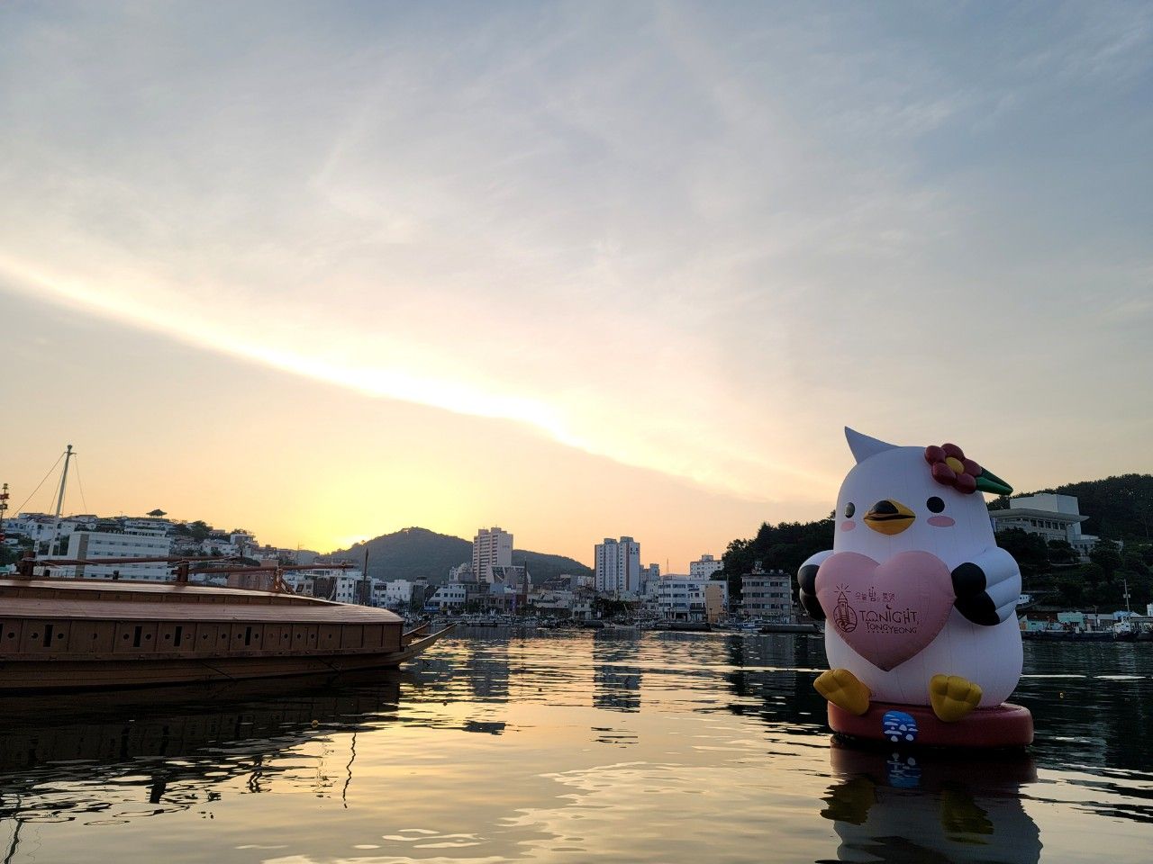 통영여객선터미널 옆 강구안이라는 곳에 통영을 상징하는 '동백이' 캐릭터가 새로 생겼더라구요. 옆에 있는 거북선 크기와 비교해 보시면 아시겠지만 엄청 크답니다. 갈매기라고 하네요~