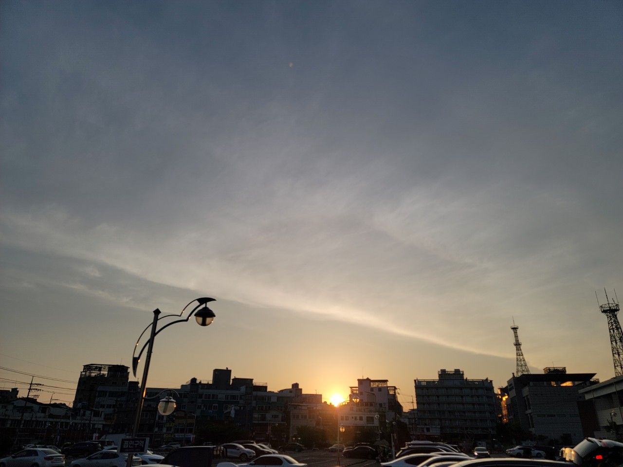 첫 배를 타려고 기다리던 중 일출을 보게 되었네요~