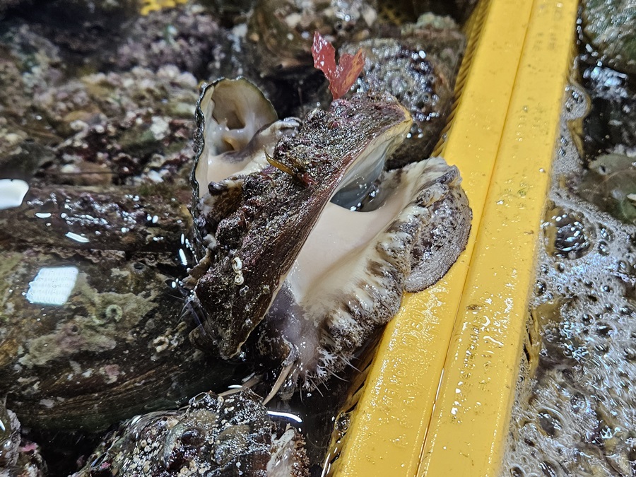 살아있는 전복도 많이 볼 수 있었는데요. 탈출하는 친구들도 종종 보였답니다. 부지런히 움직여야 바다에 도착할 텐데 말이죠~