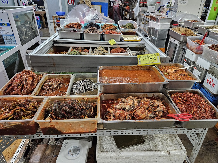 해산물을 이용한 젓갈을 파는 곳들도 많이 있었는데요. 생선 통째로 혹은 내장만, 알만.... 그 종류가 아주 다양했습니다. 보기만 해도 짜 보였지만 또 너무 감칠맛 나 보였습니다. 젓갈은 종류나 용량에 따라 다르겠지만 기본이 5,000원부터라고 합니다. 물가가 사악합니다.