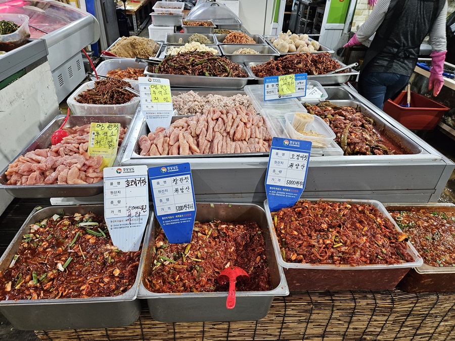 해산물을 이용한 젓갈을 파는 곳들도 많이 있었는데요. 생선 통째로 혹은 내장만, 알만.... 그 종류가 아주 다양했습니다. 보기만 해도 짜 보였지만 또 너무 감칠맛 나 보였습니다. 젓갈은 종류나 용량에 따라 다르겠지만 기본이 5,000원부터라고 합니다. 물가가 사악합니다.