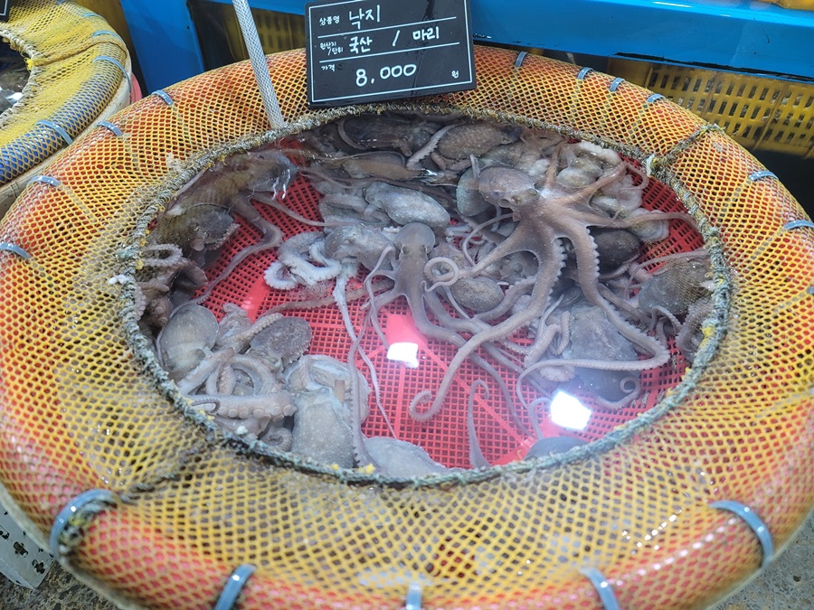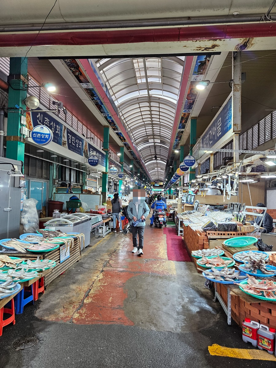 이렇게 양쪽으로 쭉 해산물 파는 곳들이 있어서 고르기가 쉽지 않을 것 같습니다. 일찍 여는 시장이라 벌써 문을 닫은 가게도 보이네요~싱싱한 횟감을 원하신다면 아침 일찍 방문하시는 것을 추천드립니다.