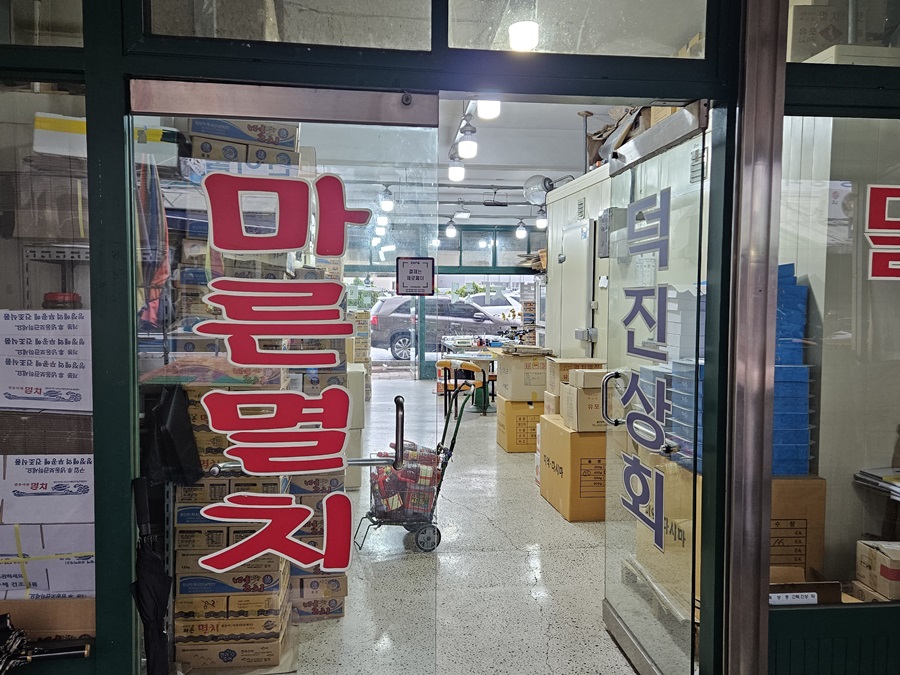 오늘 서호시장 방문의 목적은 덕진상회를 방문해 마른 멸치를 사는 것입니다.