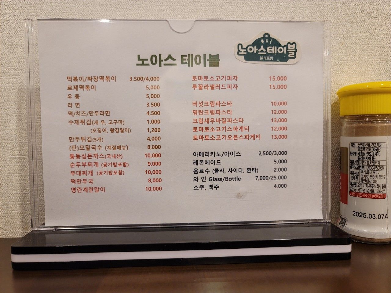 분식토랑이는 안내처럼 분식과 이탈리안 요리들이 골고루 있었는데요. 가격도 착한 노아스테이블이었습니다.