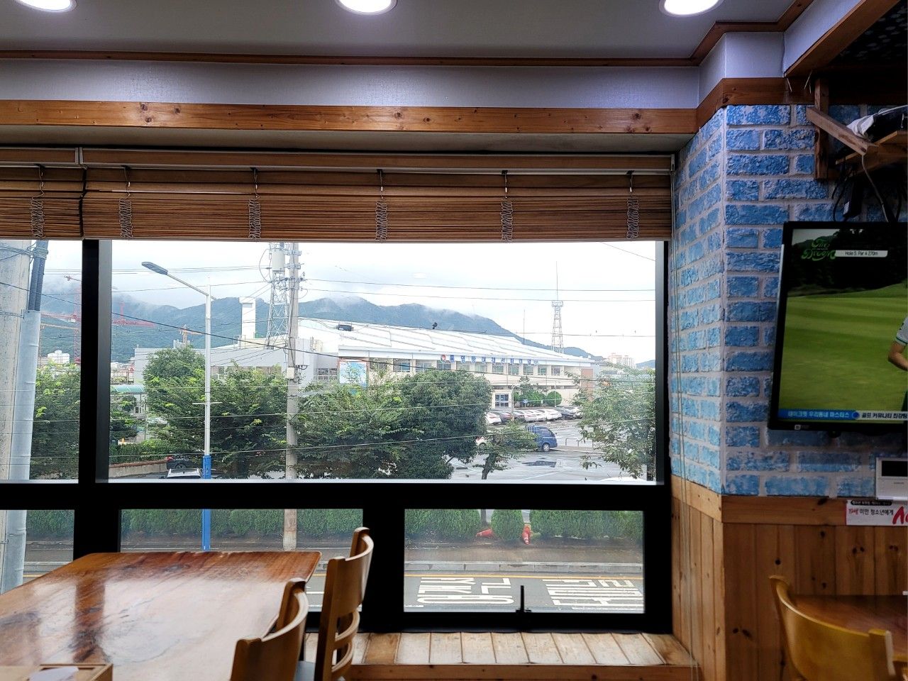 창 너머 통영항 여객선터미널도 보이네요.