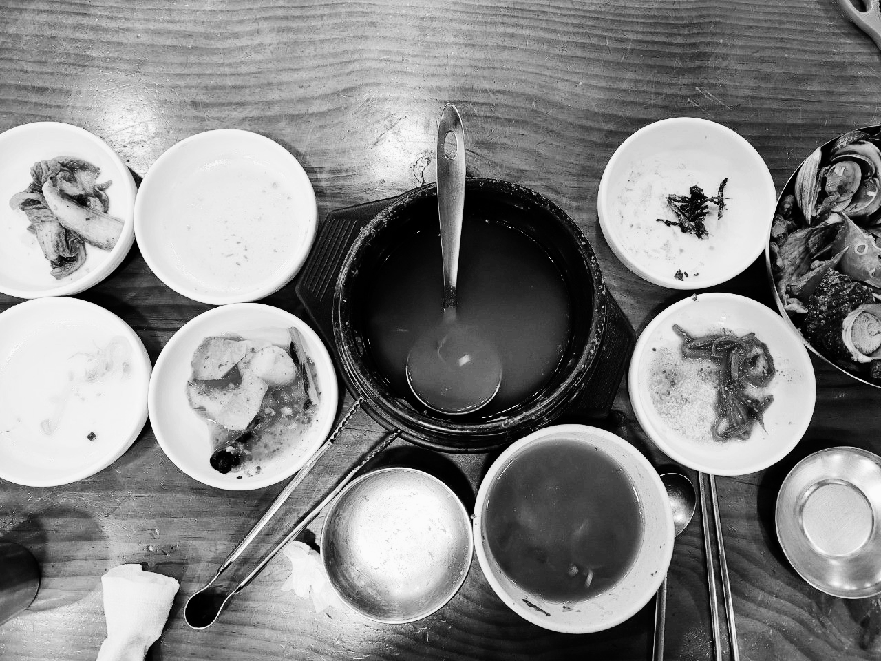 정신없이 먹다보니 해물뚝배기에 들어있던 조개와 해산물들이 큰 대접 한 가득이었네요.