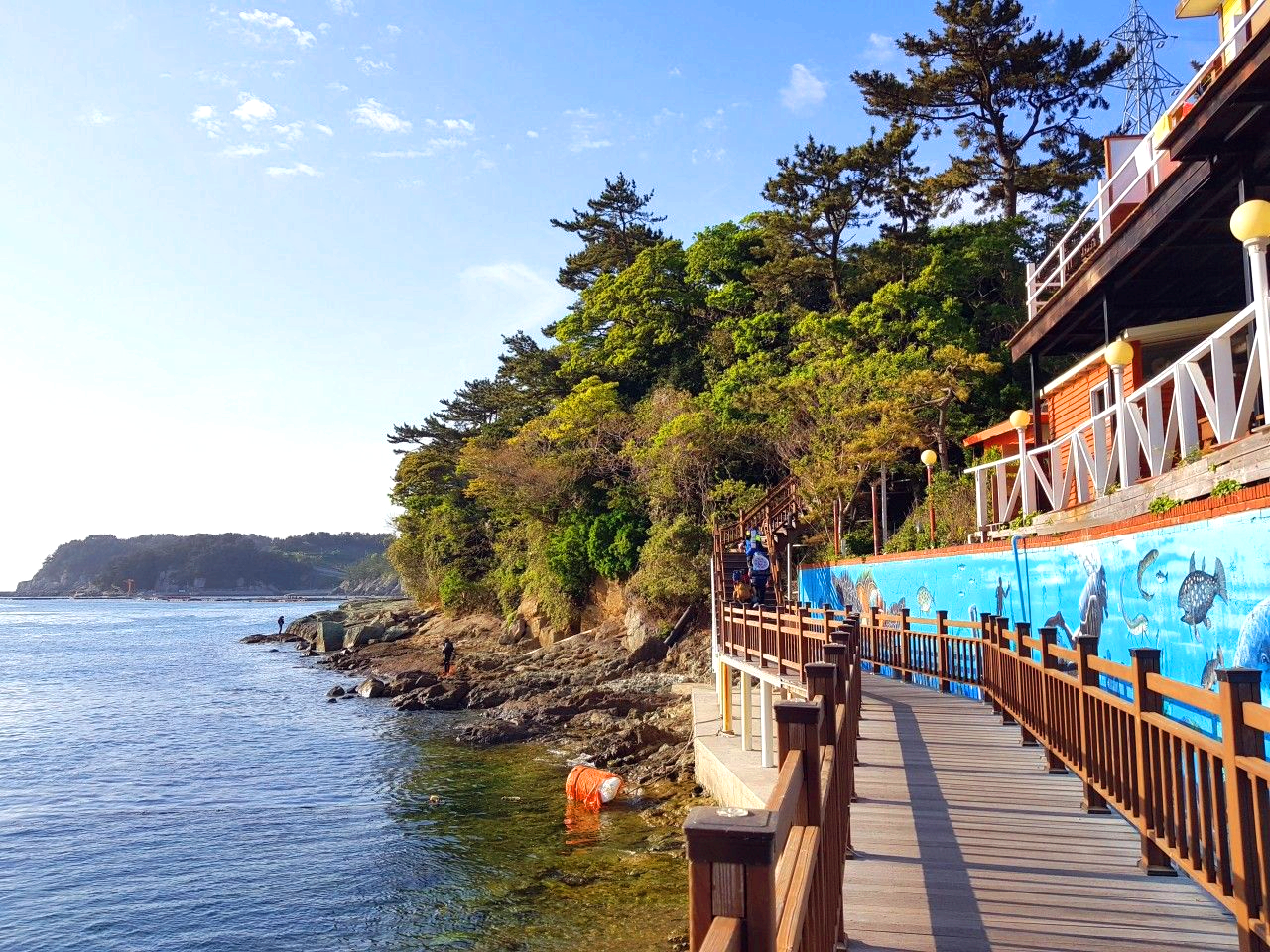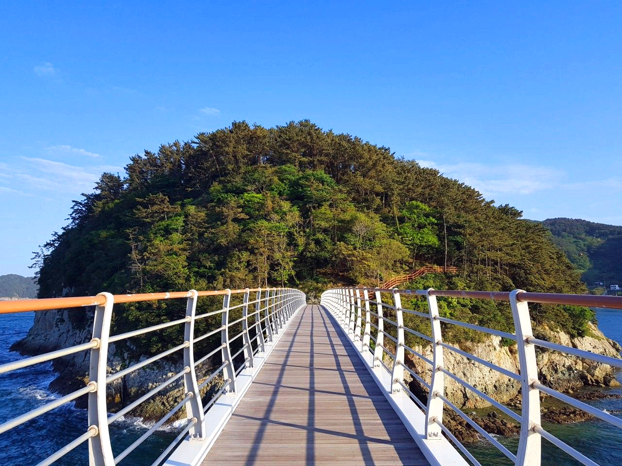 연화도 내려서 좌측 해안 데크길을 쭉 따라 올라가시면 연화도와 반하도를 잇는 보도교가 나옵니다.