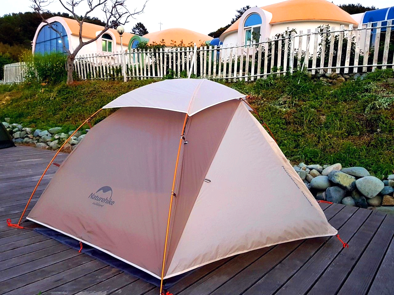데크 위에 텐트부터 설치했습니다. 해수욕장 바로 앞에 데크가 설치되어 있어서 백패킹하기 정말 좋았고 데크 바로 옆에 공중화장실도 있어 편하게 지낼 수 있었습니다.