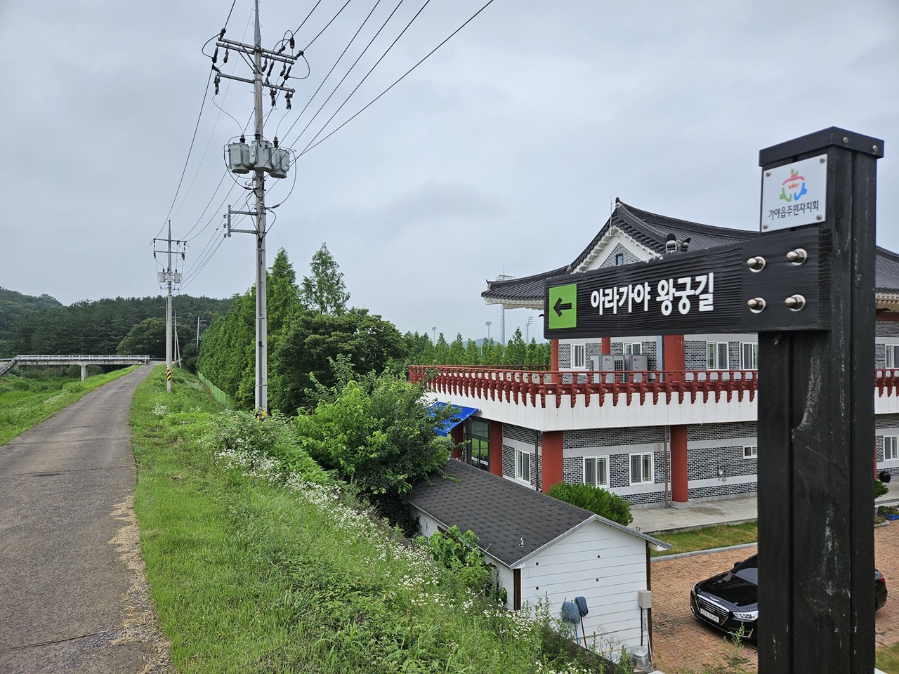 전망대 지나 함안공설운동장 쪽으로 넘어갈 수 있는 길이 있어서 건너던 중 아라가야 왕궁길 안내도도 볼 수 있었네요~ 시간이 되신다면 1시간 남짓 걸을 수 있는 거리니 트레킹 해보시는 것도 좋을 것 같았습니다~