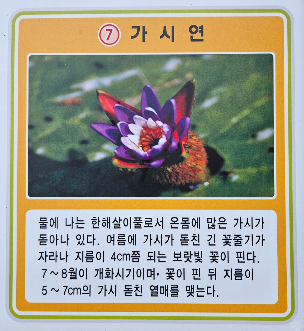 저는 왼쪽 상단 공원 쪽에서 출발해서 7번 가시연꽃부터 관람했네요~~ 가시연꽃은 아직 꽃은 전혀 보이지 않고 오돌토돌 살짝 곰피미역 닮은 연잎은 무성하더라구요~ 가시연꽃 보고 싶었는데 아쉬웠답니다~