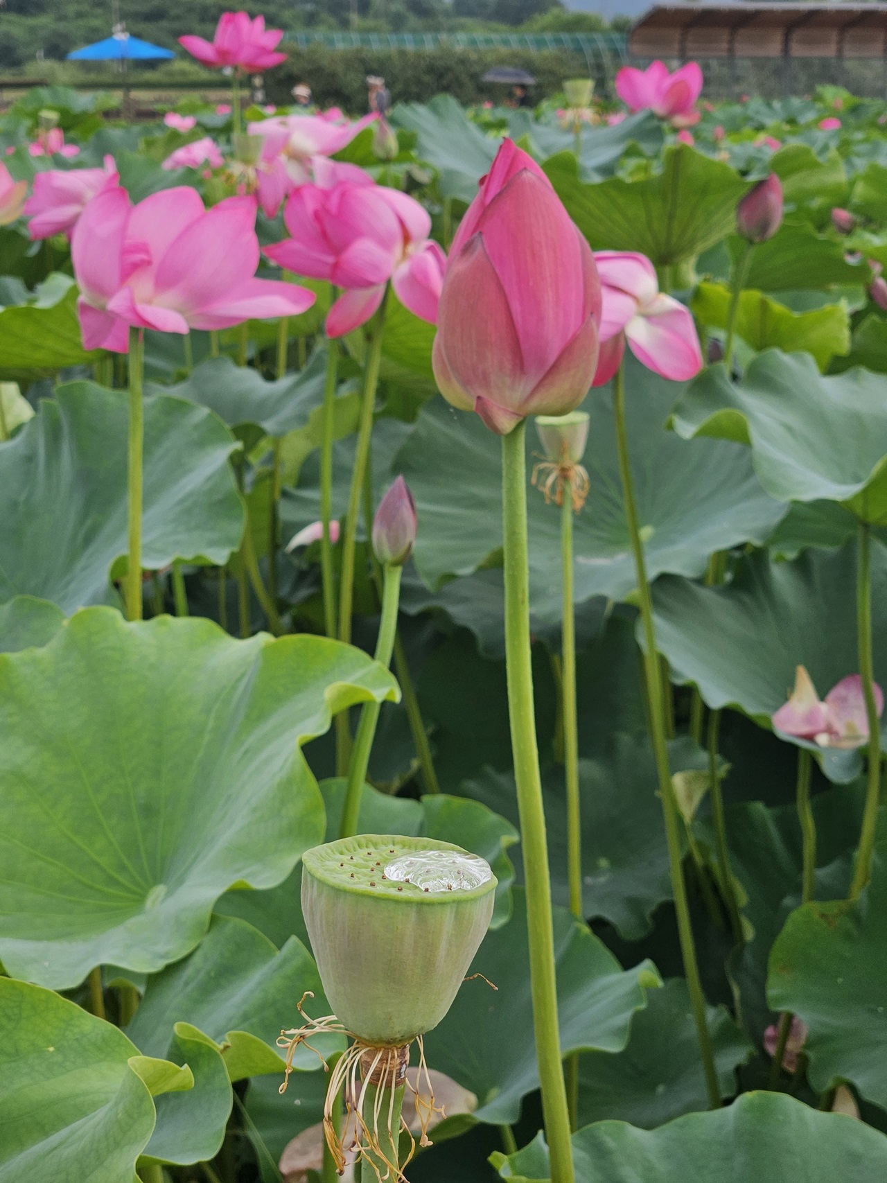 아직 피지 않은 것과 조금 핀 것 , 만개한 것 그리고 꽃잎이 다 떨어져서 연밥만 남은 것도 있었는데요~ 연꽃의 일생을 보는 것 같아서 재밌기도 했답니다~
