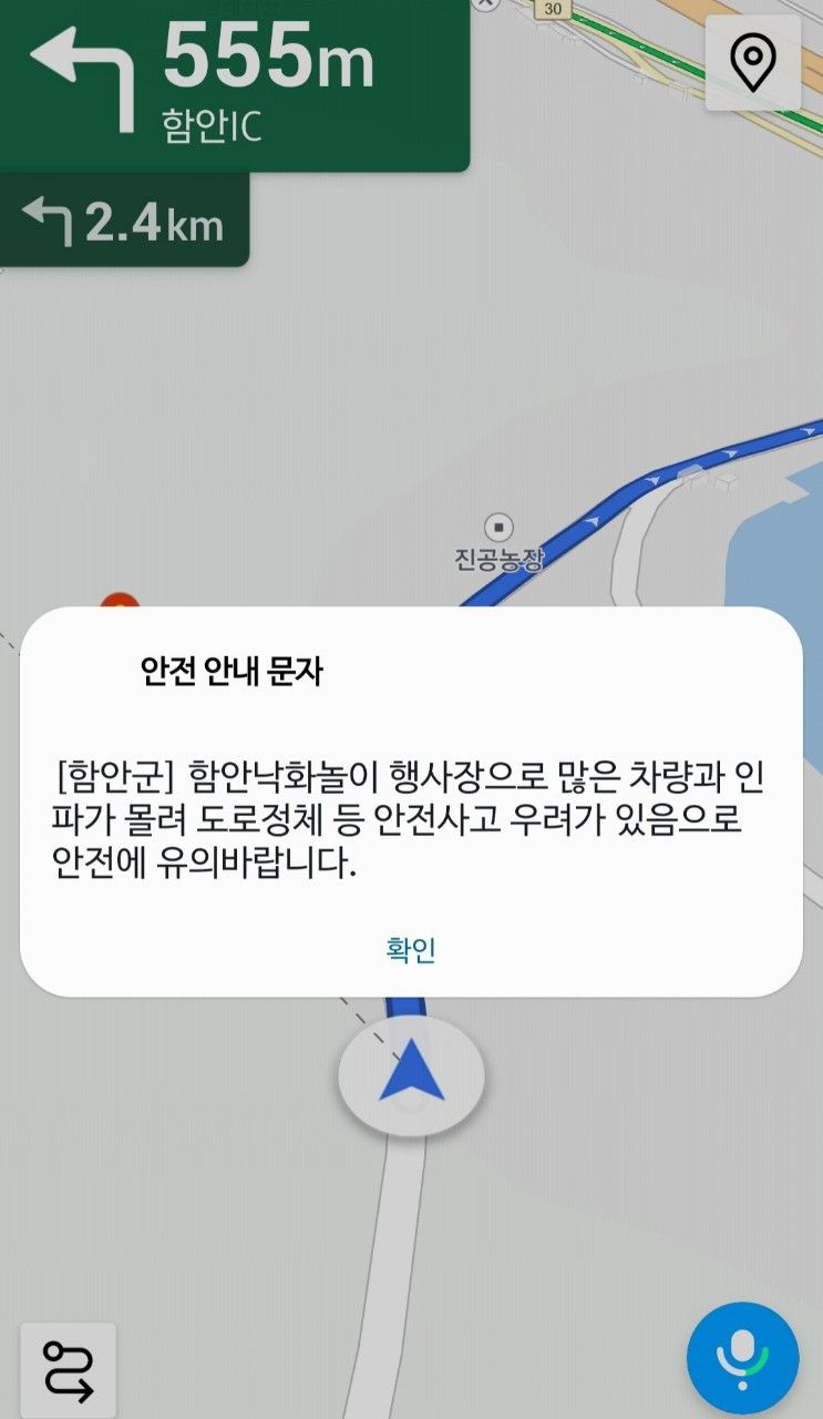 5시가 넘어서니 함안군에서 안전 안내 문자가 한 시간에 한 번씩 왔습니다. 혹여나 인파로 인해 다치는 사람이 있을까 조심하라는 내용이었습니다.