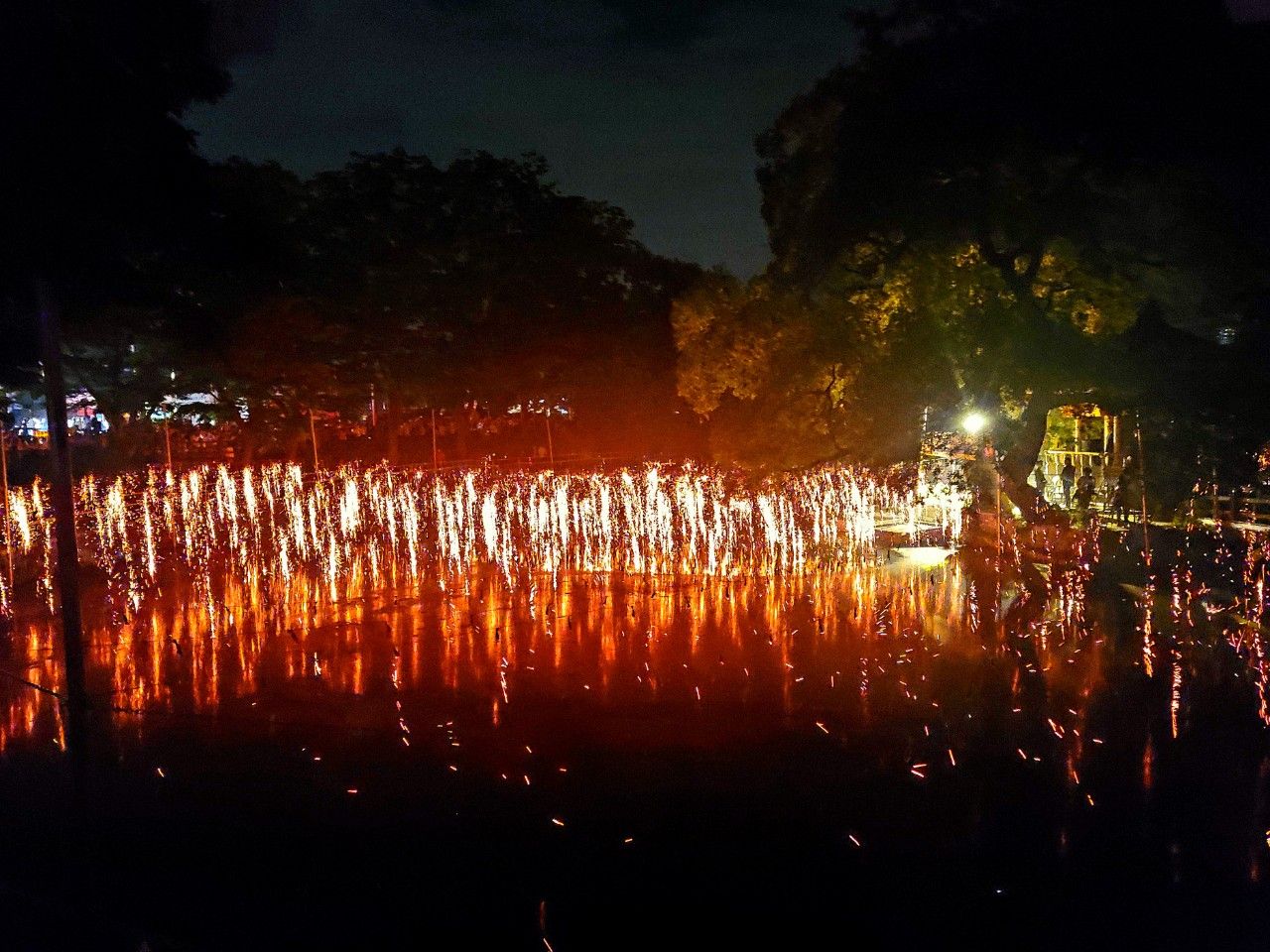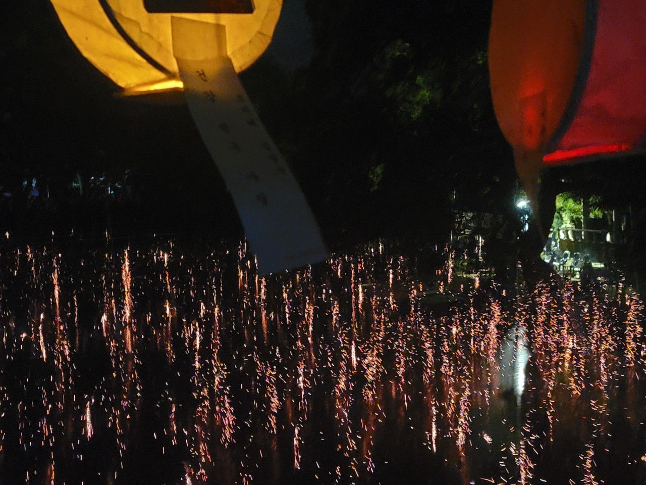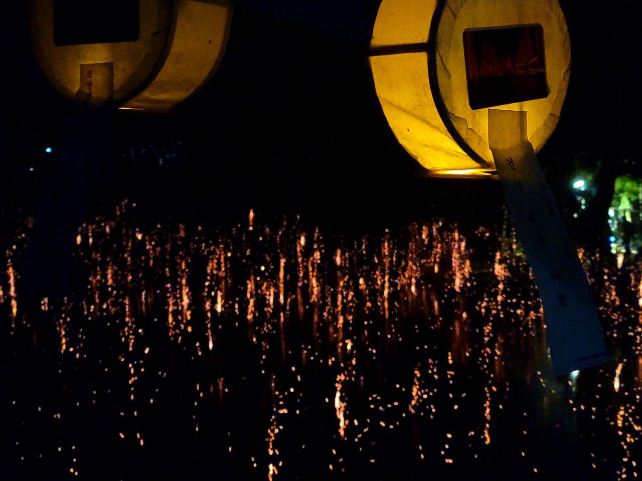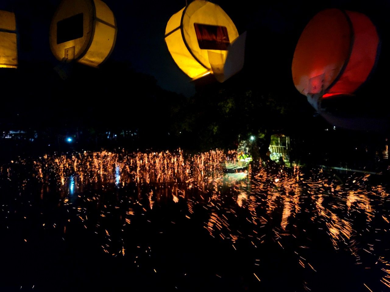 축제가 시작되었습니다. 잘 보이지는 않지만 영상에서 보던 모습처럼 작은 배를 타고 일일이 불을 붙이고 계시네요~
