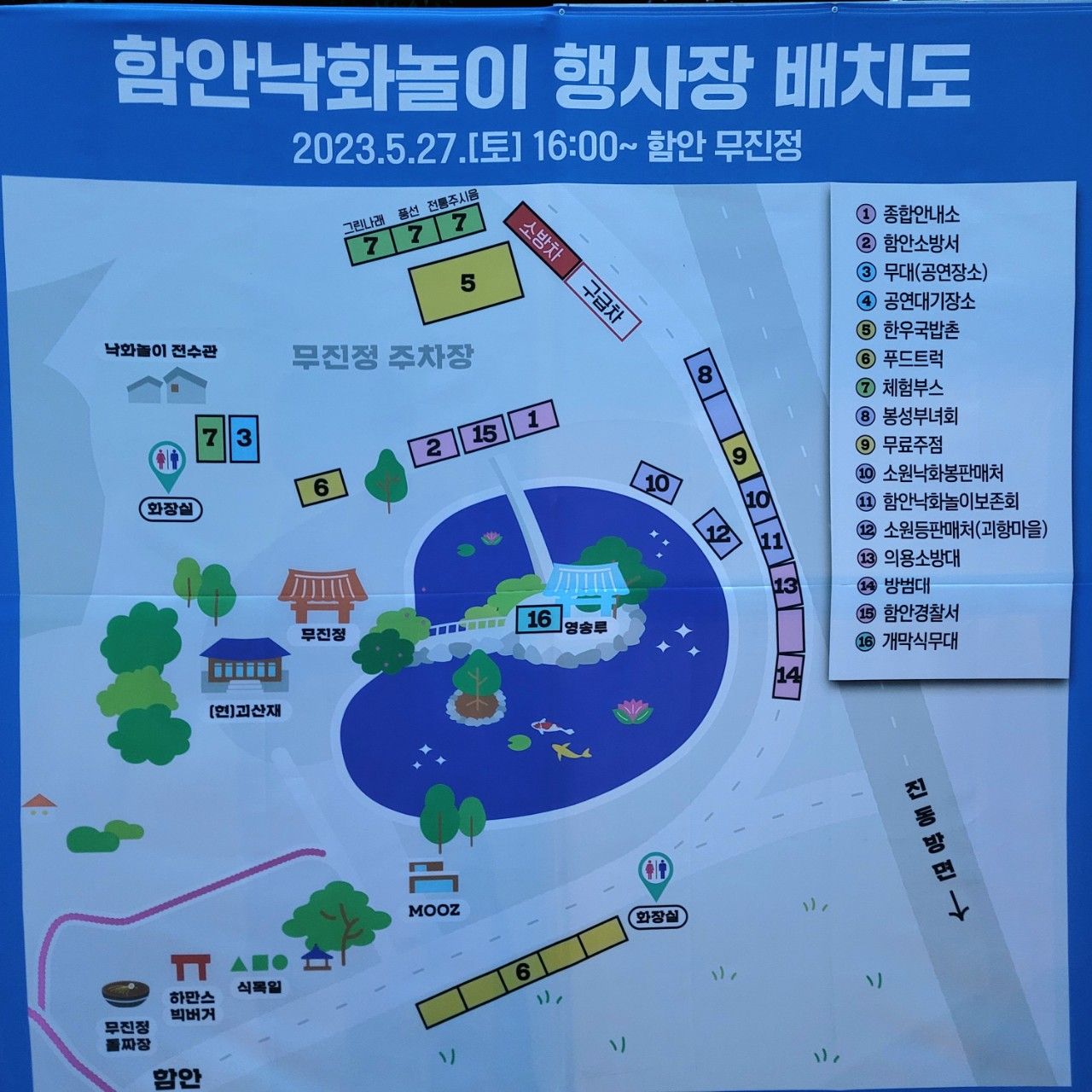 겨우 찾은 행사장 배치도~~ 행사장 배치도가 여러 곳에 있지 않아 처음 가는 사람들에게 넓지 않은 무진정 일대가 엄청 복잡하게 느껴졌네요~