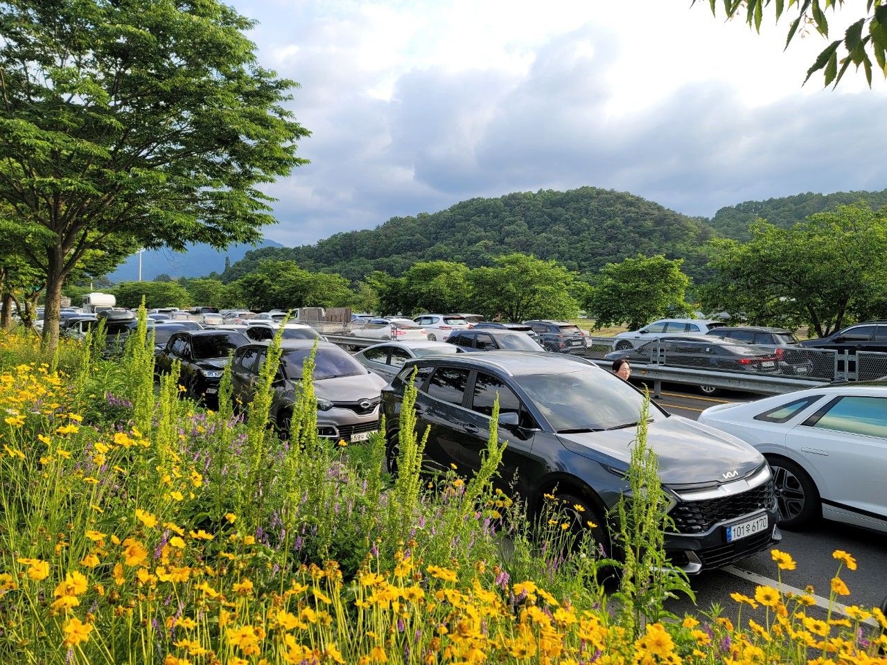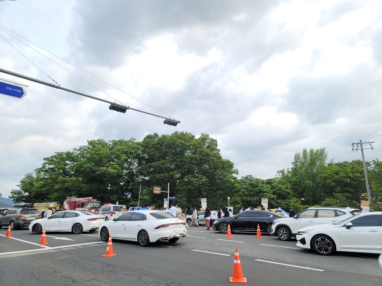 편도 2차로 갓길과 2차로는 2중 주차장으로 이미 가득 차 있었는데요. 축제 끝나고 안에 있는 차들은 많이 기다려야 할 것 같네요~