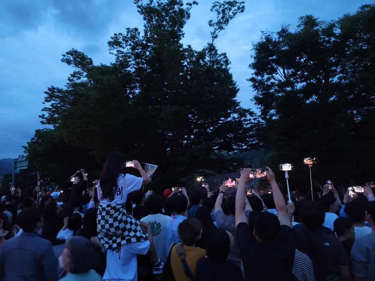 아직 낙화봉이 남아있는데 마무리하겠다며 조명을 켜라고 하시는 관계자분..... 야속했습니다. 뒤에서 기다리다 겨우 행사장 가까이 들어갈 수 있었던 한 사람으로 너무 아쉬운 마음이었는데, 낙화봉도 남아 있는 상태에서 그만하겠다며 방송을 여러 번 하시니... 에효ㅠㅠ