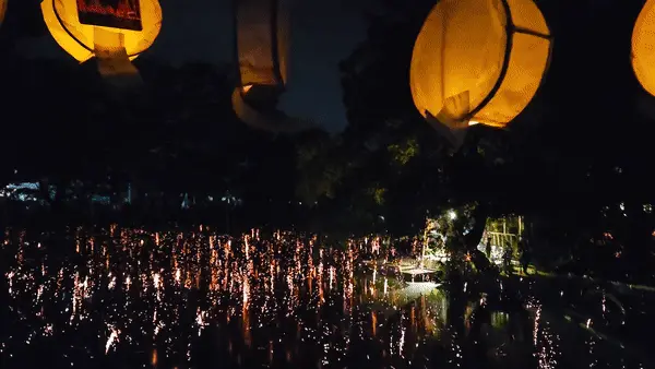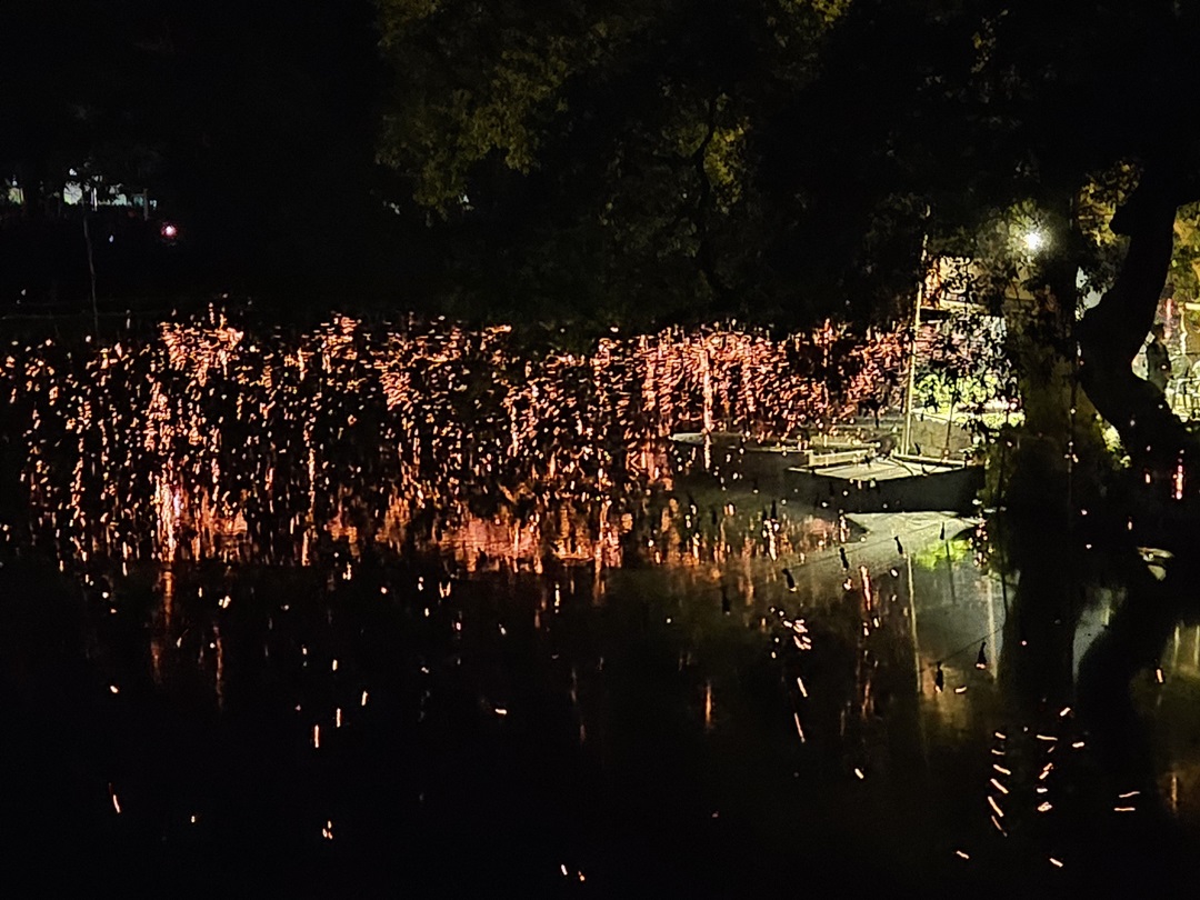 축제가 시작되었습니다. 잘 보이지는 않지만 영상에서 보던 모습처럼 작은 배를 타고 일일이 불을 붙이고 계시네요~