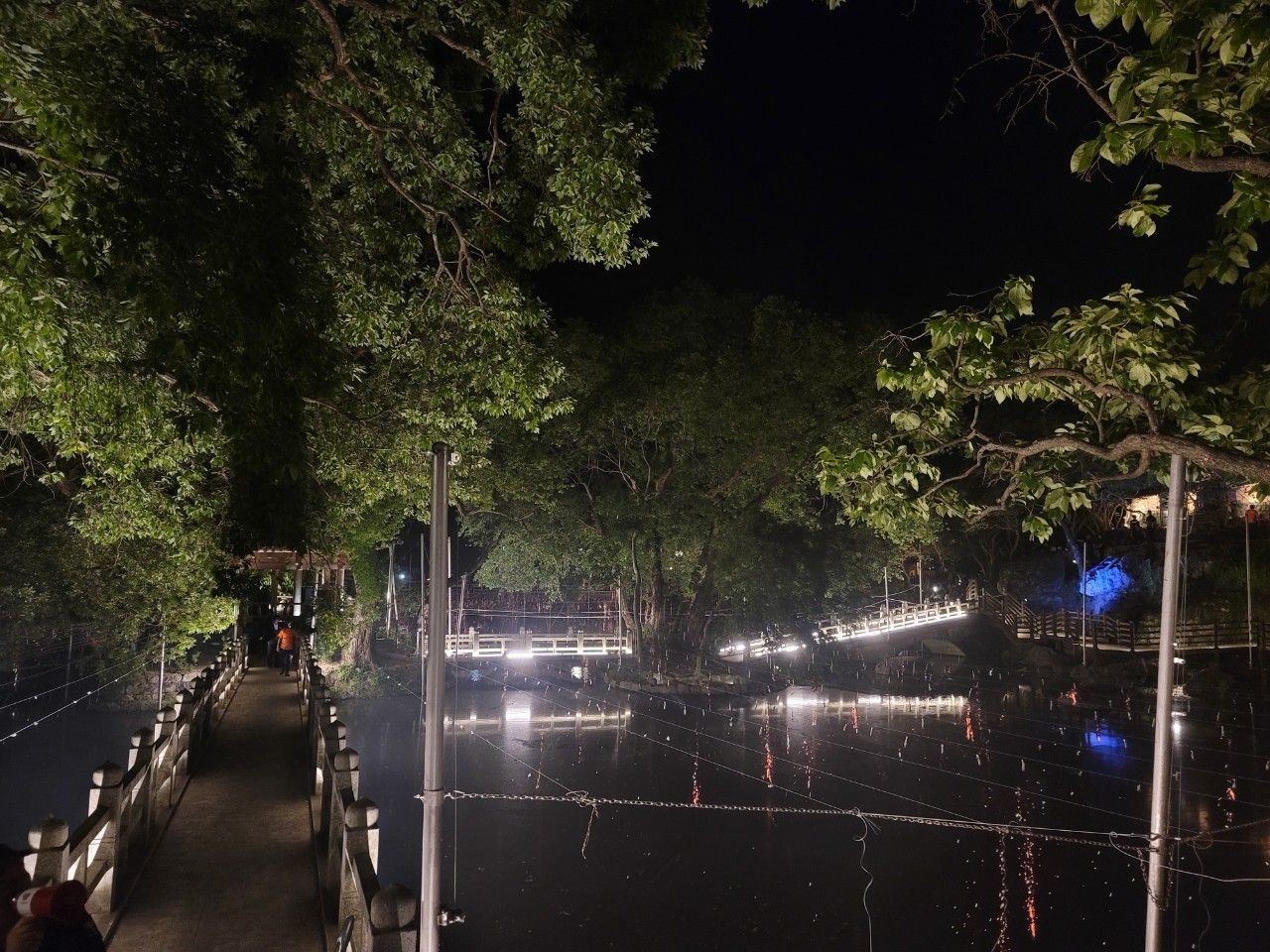 낙화축제가 마무리되고 무진정에 불이 켜졌습니다. 밝은 조명이 있으니 줄만 보이네요. 주변이 깜깜할 때 붉게 떨어지던 낙화의 모습이 잊혀지지 않을 것 같습니다.