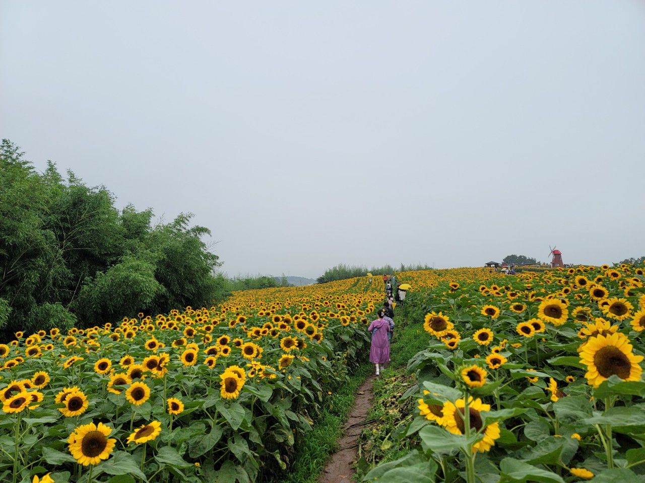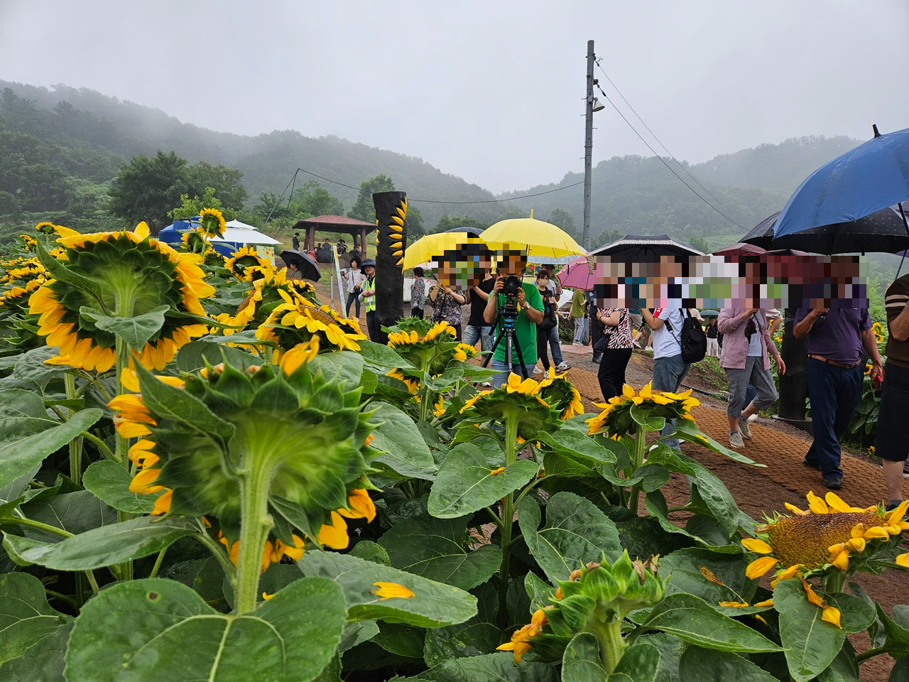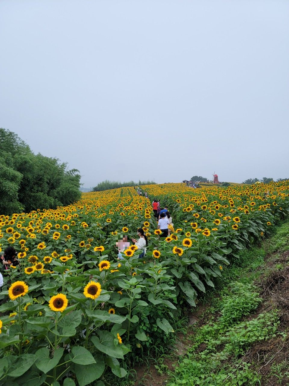 길 따라 펴 있는 해바라기를 배경으로 사진 찍기 바쁜 사람들이었습니다~