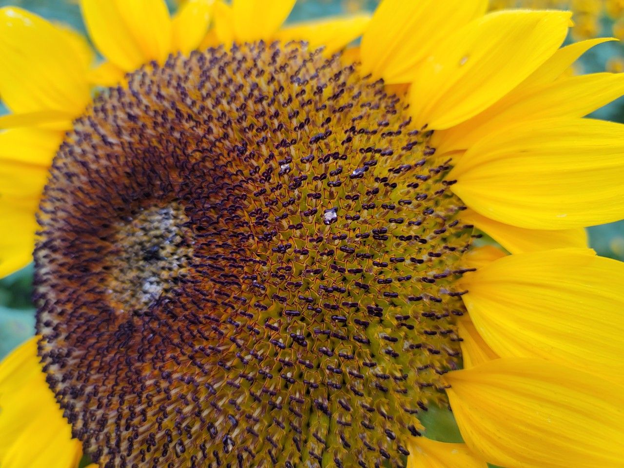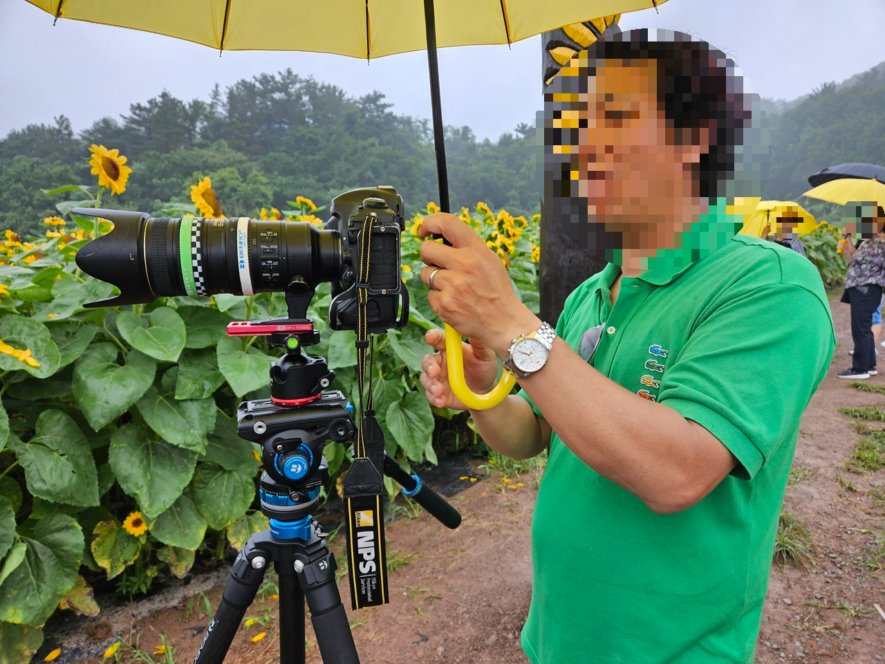 가랑비가 내리기 시작해 해바라기가 촉촉이 젖었구요~