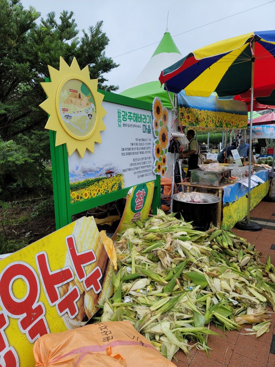 산더미 같은 옥수수 껍질과 옥수수가 삶아지는 달큰한 냄새까지 갑자기 배가 고파지네요~