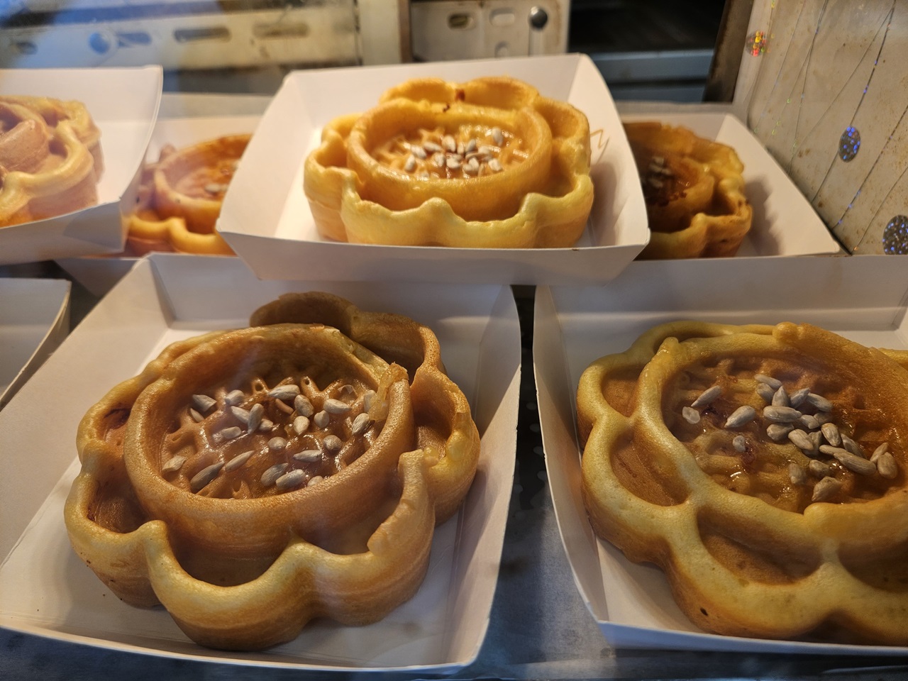 해바라기 모양에 해바라기 씨앗이 올려진 해바라기빵인데요~ 해바라기 씨앗까지 듬뿍 올려져 있어서 아주 고소할 것 같았답니다~ 해바라기빵 가격은 하나에 3,000원~