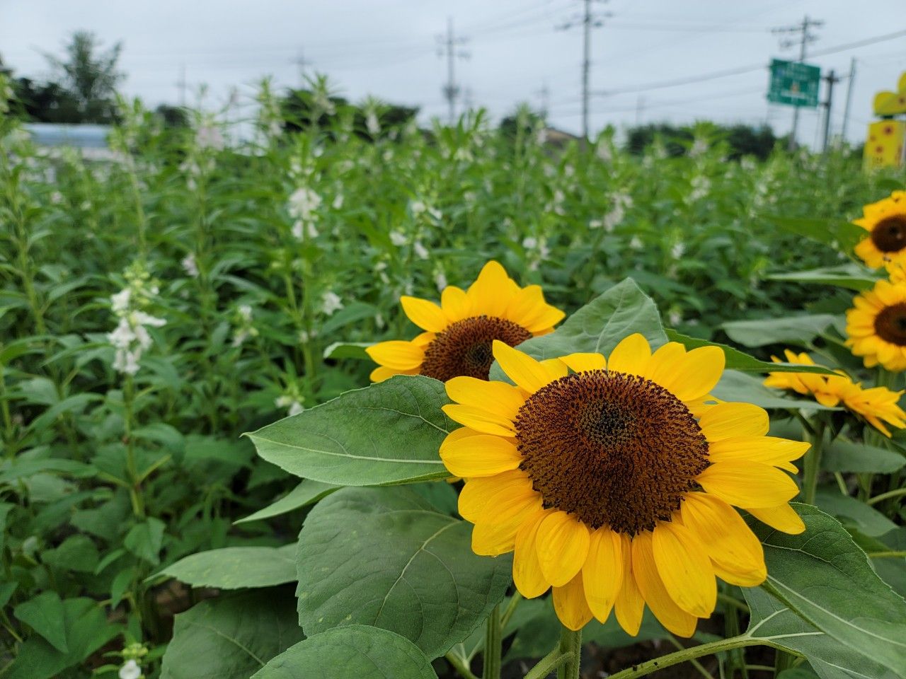 입구부터 해바라기 길이었는데요~ 뒤로 보이는 깨꽃도 참 이쁩니다~