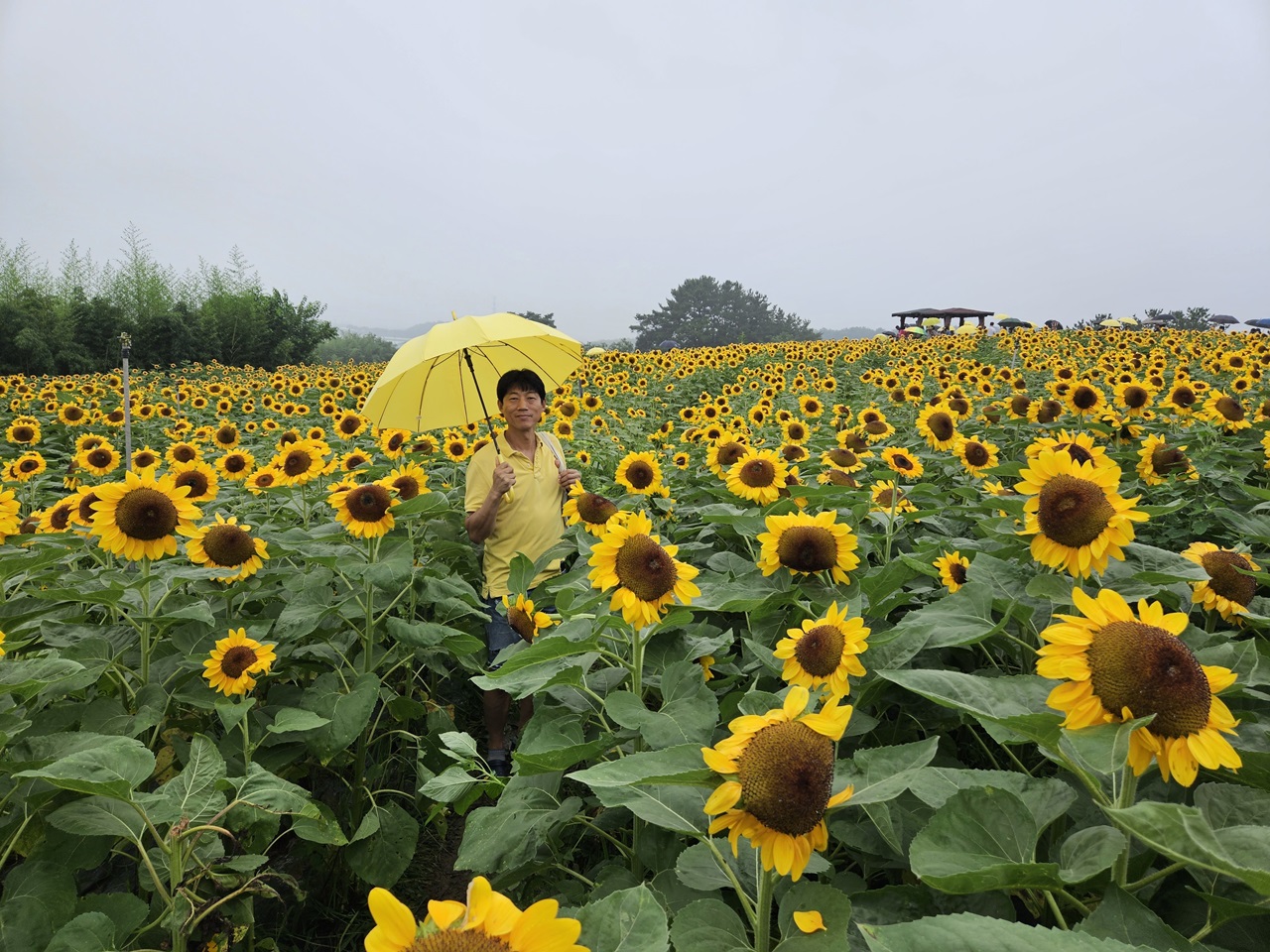 노란 우산과도 아주 잘 어울리죠? 노란 티셔츠, 노란 해바라기, 노란 우산 바로 깔맞춤ㅋㅋ