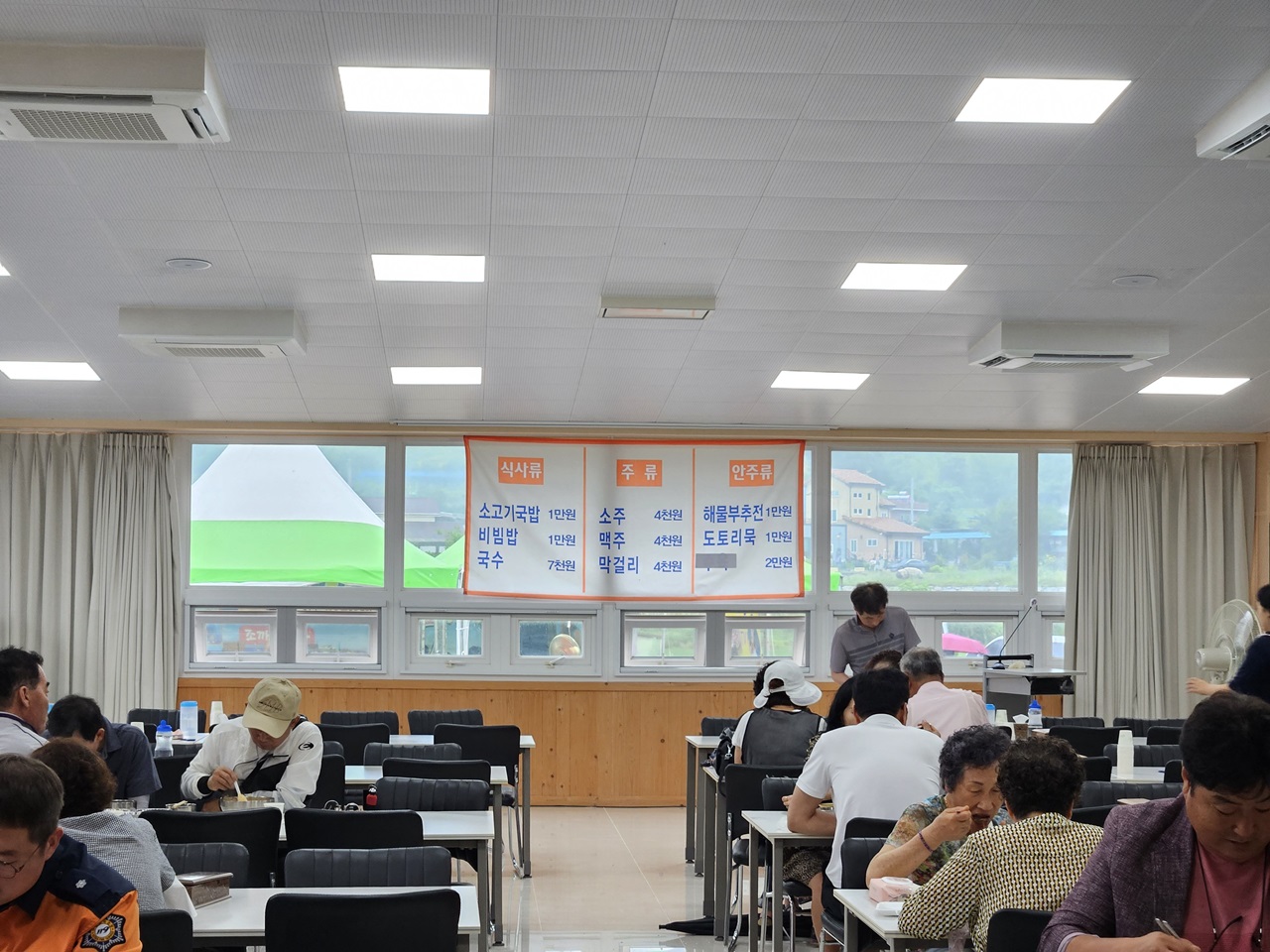 시원하고 꽤 넓은 공간에 몇 가지 메뉴로 운영하고 계셨는데요~ 소고기국밥과 비빔밥 만원!! 국수가 7천원, 해물부추전과 도토리묵이 만원, 주류(소주, 맥주, 막걸리)가 4천원에 판매되고 있었답니다.~