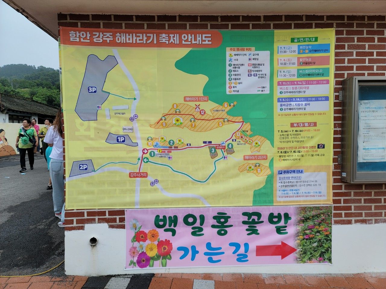 마을 중간쯤 함안 강주해바라기 축제 안내도가 있었답니다~ 백일홍 꽃밭도 있나 봅니다~