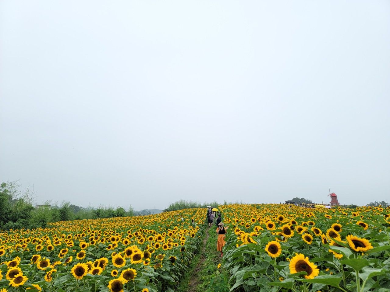 길 따라 펴 있는 해바라기를 배경으로 사진 찍기 바쁜 사람들이었습니다~