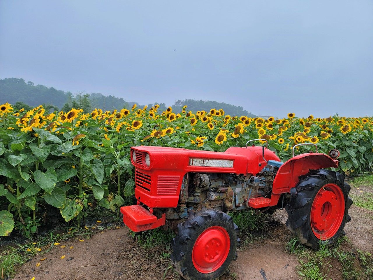 인테리어 소품 같은 빨간 경운기가 해바라기와 아주 잘 어울렸네요~