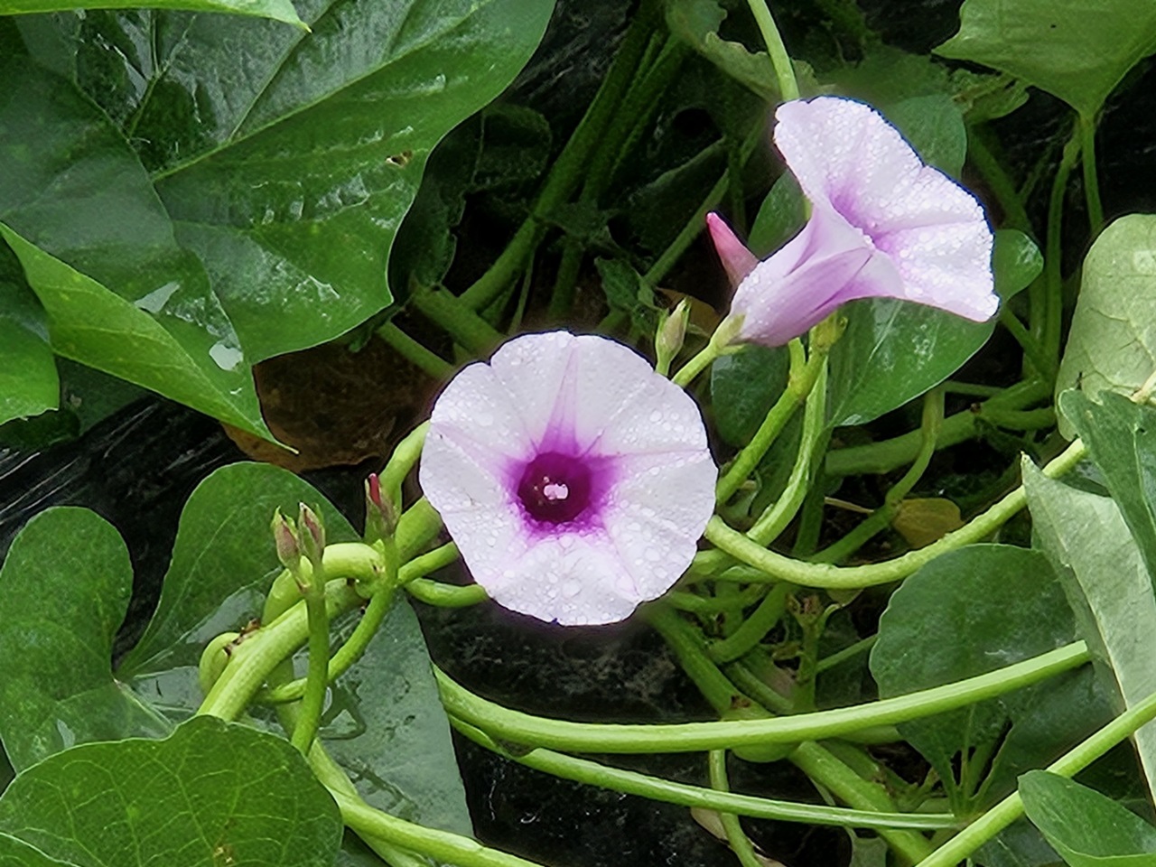 오랜만에 보는 고구마 꽃도 아주 영롱하고 이쁘더라구요~ 보라색 나팔꽃 닮은 고구마꽃~~이뻥^^