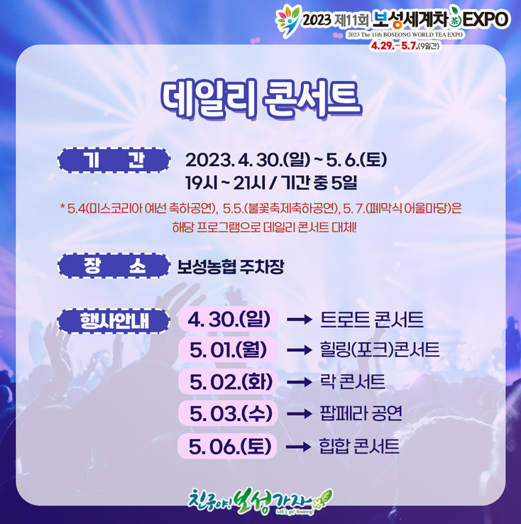 보성세계차엑스포 공연프로그램, 출처:보성군청