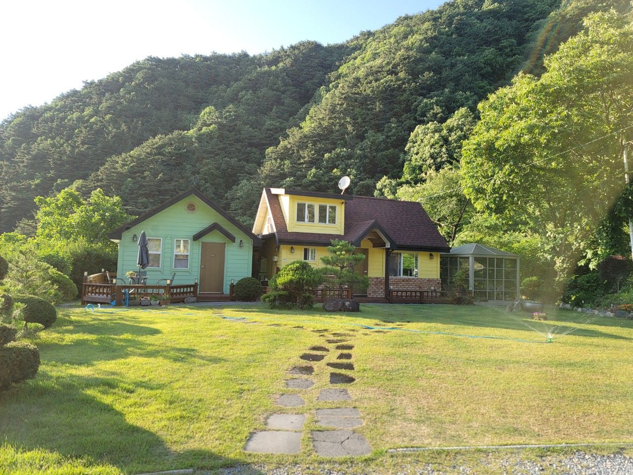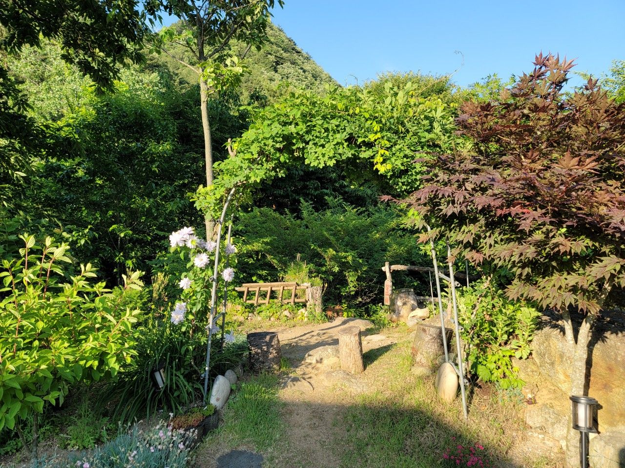 주인아저씨의 권유로 계곡으로 향해보았는데요. 마당을 지나 비밀통로가 있었습니다.