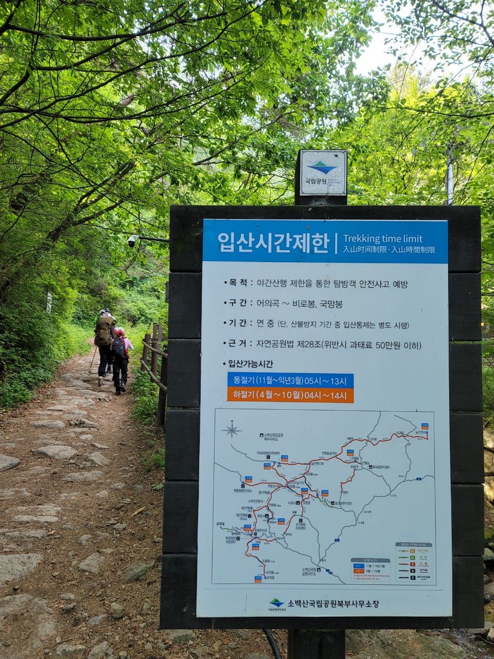 산행시작입니다. 하절기의 경우 새벽 4시부터 14시까지 입산 가능하고 동절기는 5시부터 13시까지 입산시간이 제한된다고 합니다.
