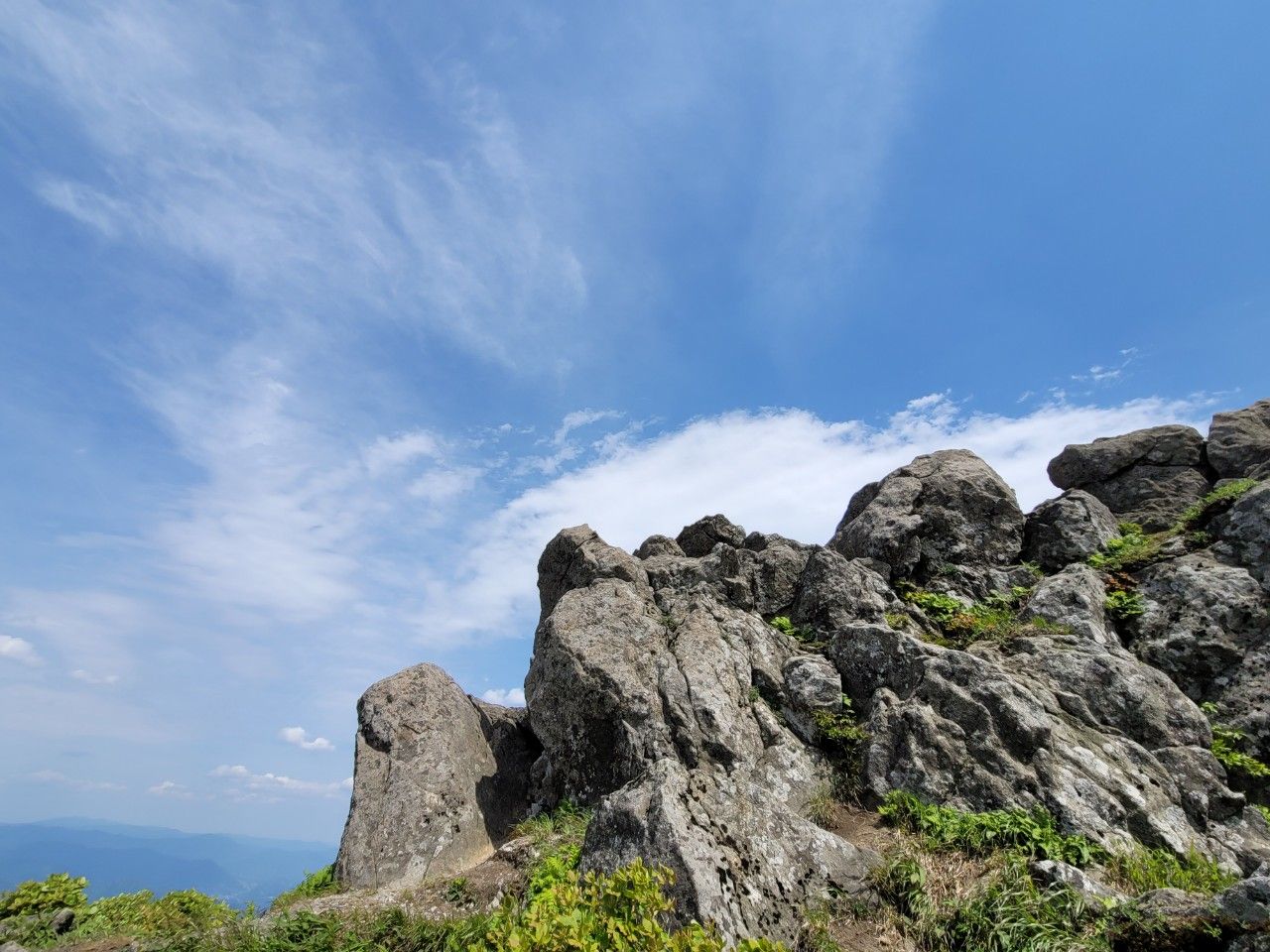 어찌 걸쳐 있는지 신기한 바위와 소백산과 하늘~~