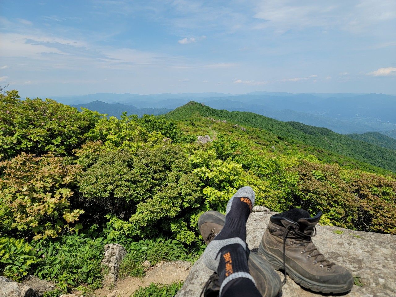 6월 첫 주 산도 하늘도 푸른 소백산국립공원 산행 다녀왔습니다. 어의곡에서 시작해서 비로봉, 국망봉, 늦은맥이재를 거쳐 어의곡으로 하산하는 코스였는데요. 철쭉은 볼 수 없어 아쉬웠지만 맑은 날과 소백산의 초록이 절경을 이루는 날이었습니다.