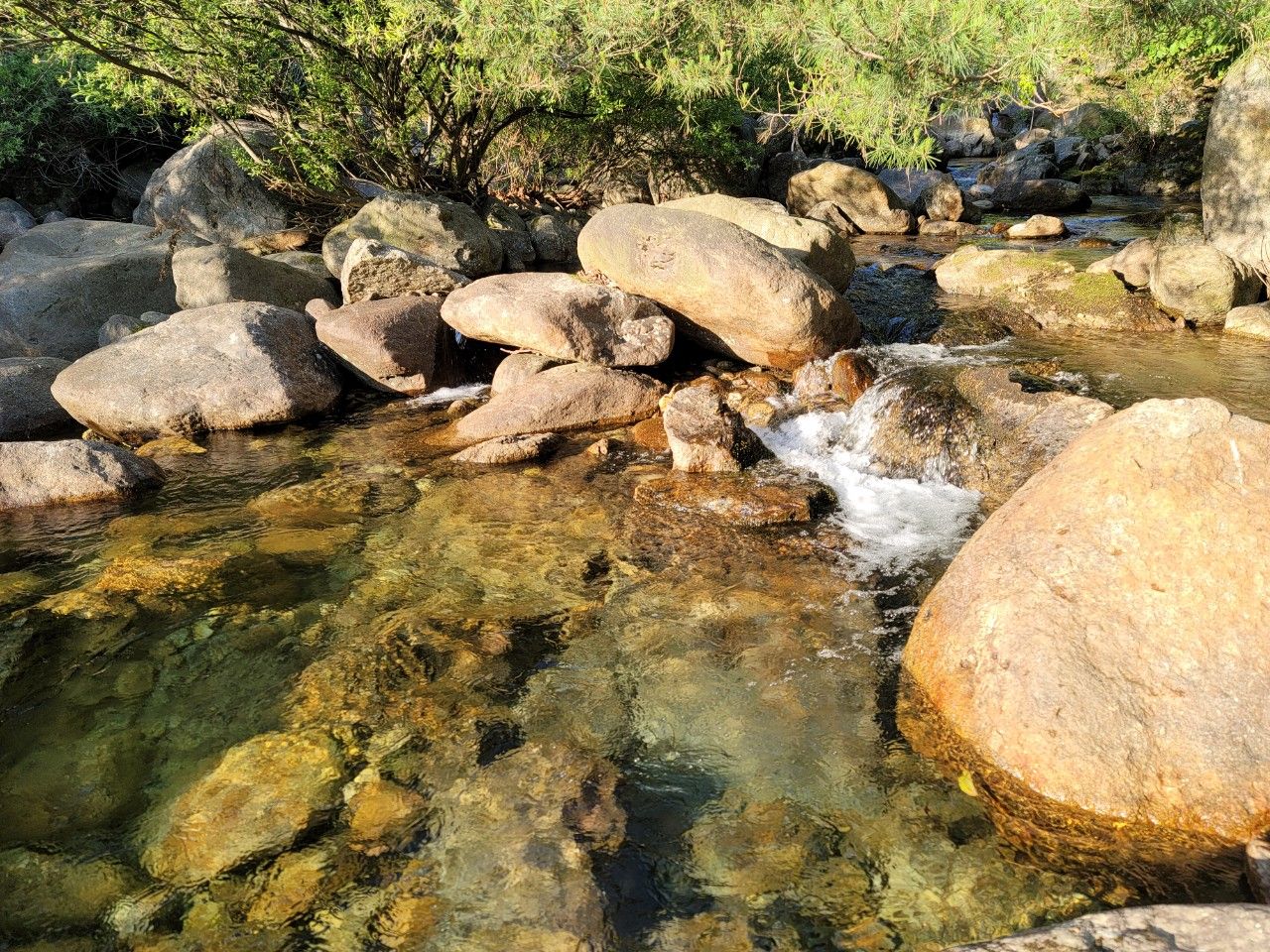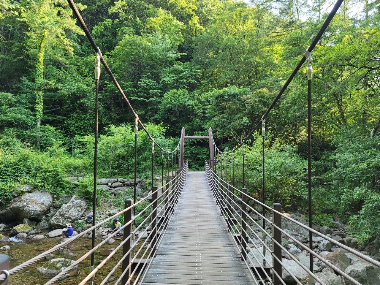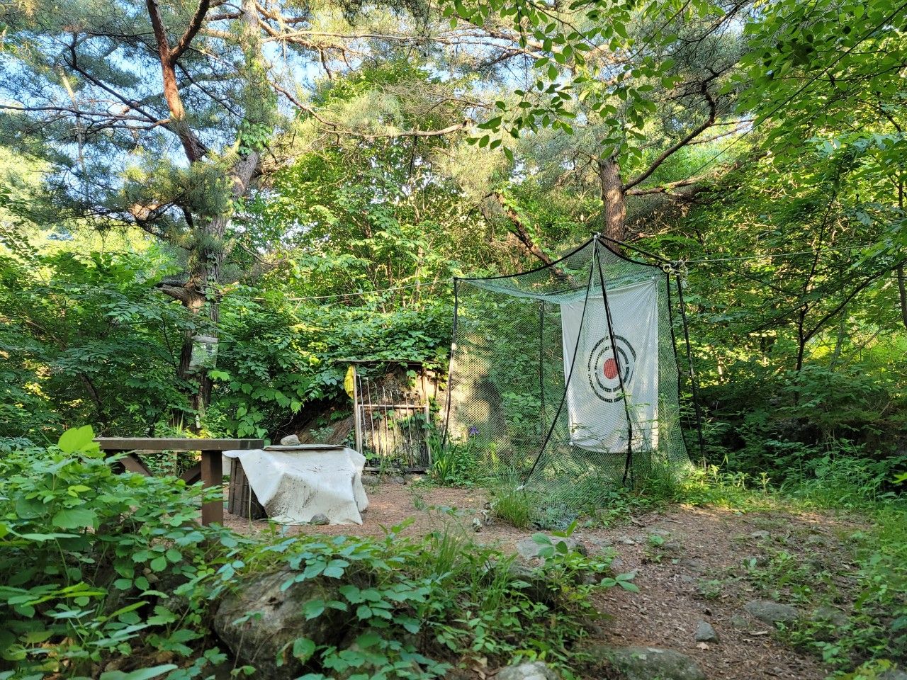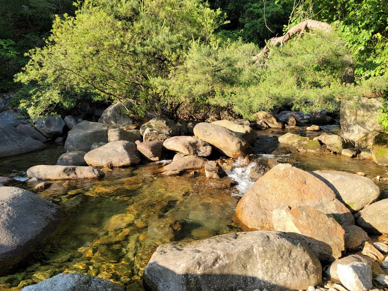 주인아저씨의 권유로 계곡으로 향해보았는데요. 마당을 지나 비밀통로가 있었습니다.