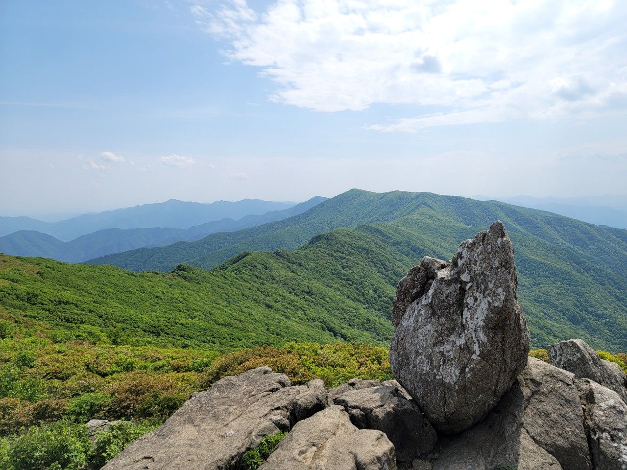 6월 첫 주 산도 하늘도 푸른 소백산국립공원 산행 다녀왔습니다. 어의곡에서 시작해서 비로봉, 국망봉, 늦은맥이재를 거쳐 어의곡으로 하산하는 코스였는데요. 철쭉은 볼 수 없어 아쉬웠지만 맑은 날과 소백산의 초록이 절경을 이루는 날이었습니다.